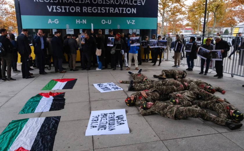 x V petek, 24. oktobra, je napovedan protest v mestecu Tessera blizu Benetk, kjer ima svoje prostore družba Leonardo. Dogodek poteka v sklopu mobilizacije proti mednarodni Cybertech konferenci, ki te dni poteka v Rimu. Na konferenci sodeluje več izraelskih podjetij in drugih organizacij, ki služijo na palestinskih truplih.