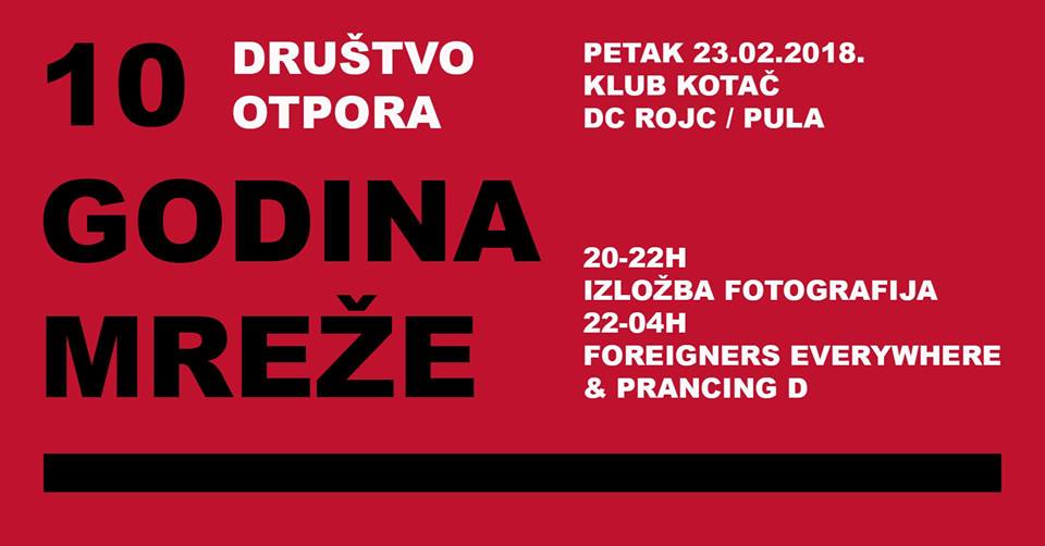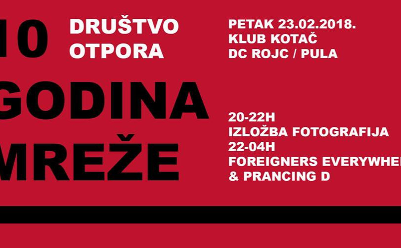 10 godina Mreže anarhista (PULA): Klub KOTAČ DC Rojc, Pula: petek 23.02.2018 ob 20ih