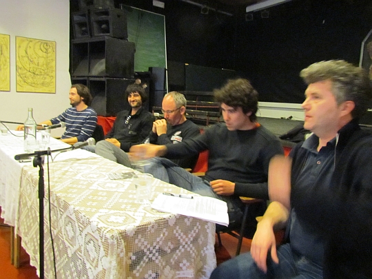Prisluhnite kolažu posnetkov pogovora, ki se je minuli četrtek zgodil v koprskem MKSMC-ju. Okroglo mizo z naslovom "Protesti in politično delovanje Mariborčanov in Mariborčank 2012/13" so pripravili člani Društva peripatetikov Likej, člani Društva prijateljev zmernega napredka in člani Ustanove nevladnih na mladinskem polju Pohorski Bataljon. Gostje okrogle mize so bili: Sanjin Jašar (aktivist skupine 29. oktober), Franc Trček (skupina 29. oktober, Iniciativa Mestni zbor) in Aljoša Peternel (Iniciativa Mestni zbor). Okroglo mizo sta povezovala: Igor Bijuklič in Andrej Marković, oba člana Društva peripatetikov Likej.