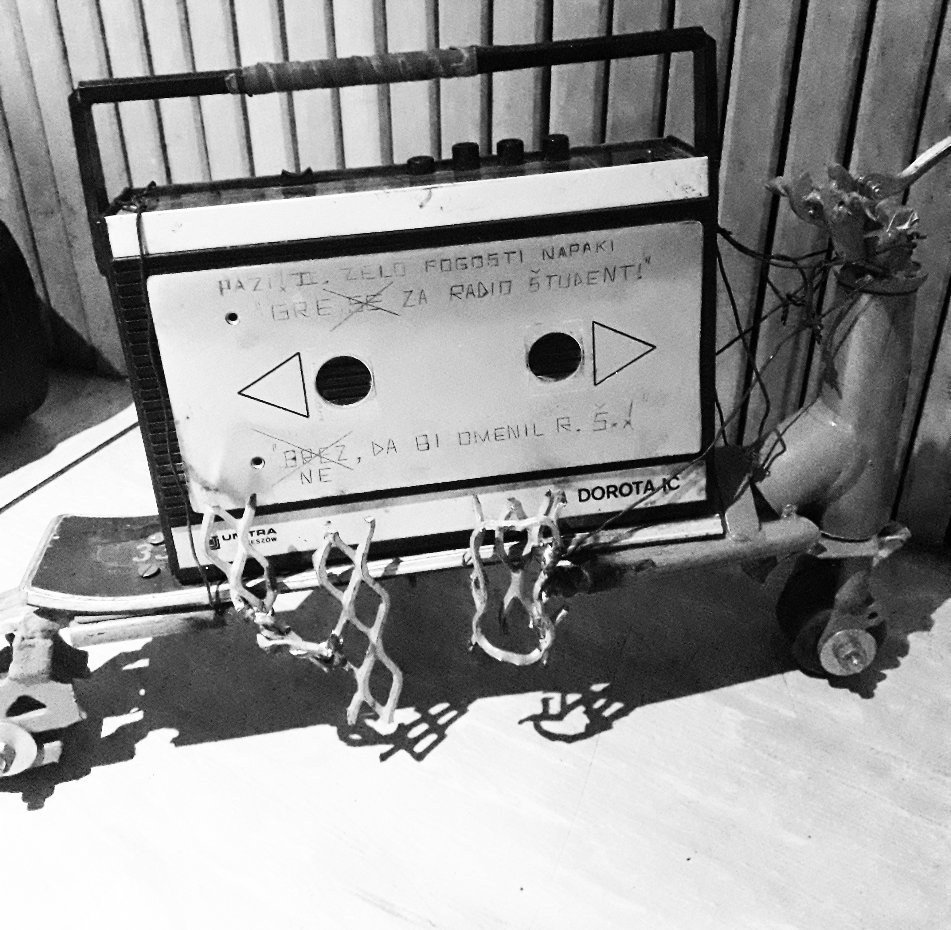 Zvesti poslušalec in tovariš Tilen je radiu ob 48-letnici namenil skulpturo, sestavljeno iz v sikro predelanega Rogovega koelsa, zadnjega dela smuči in radijskega sprejemnika. "Pazi, dve zelo pogosti napaki: gre (se) za radio študent in pa "brez, da bi omenil RŠ" / "ne da bi omenil RŠ"," piše na postmodernem socialističnem umetniškem izdelku. Sledila je razprava o eklekticizmu ...