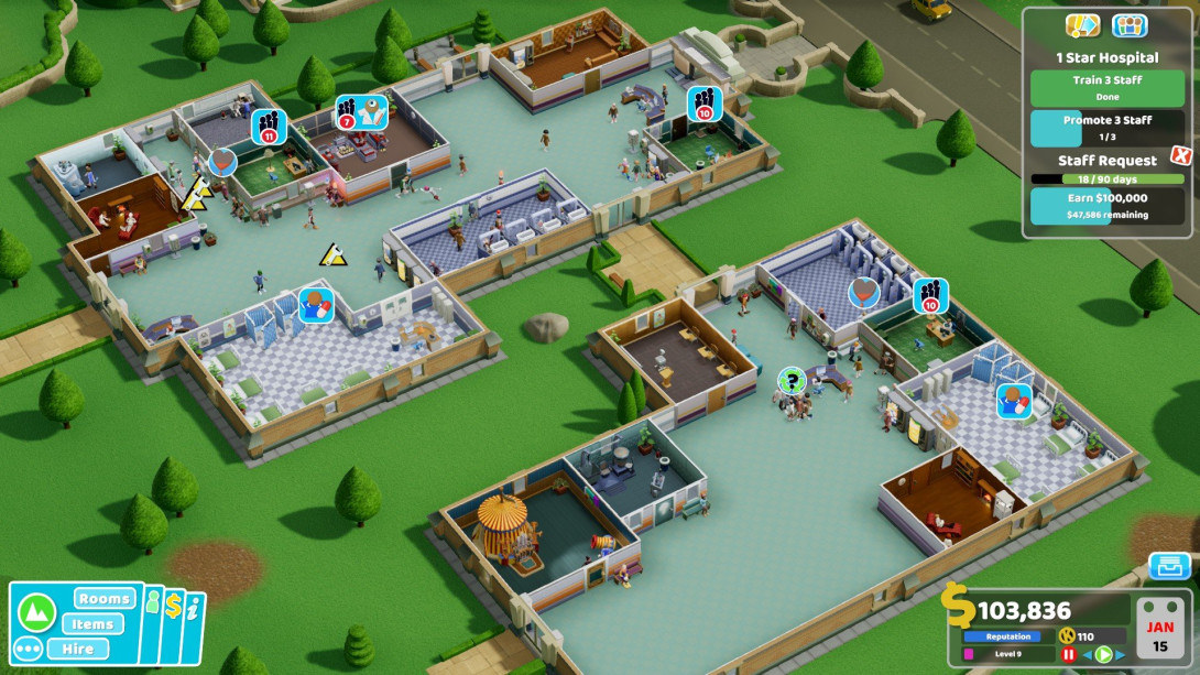 Pod črto gre torej za več kot spodobno poslovno simulacijo, ki vas zna zaposliti za kakih štirideset ur, pa sploh nismo šteli mnogoterih DLC-jev. V čevlje ministra Poklukarja lahko stopite na poljubni platformi, ker je igra na voljo tako za vse namizne operacijske sisteme kot tudi za Playstation, Xbox in Switch. Slednje je mogoče še toliko bolj vredno izpostaviti. Kompleksni vmesniki strategij in menedžerščin so na konzolah ponavadi neudobni, Two Point Hospital je svetla izjema. Sam sem jo preizkušal na kavču s kontrolerjem, pa mi kljub pešajočemu vidu in refleksom ni bilo prav nič hudo.
