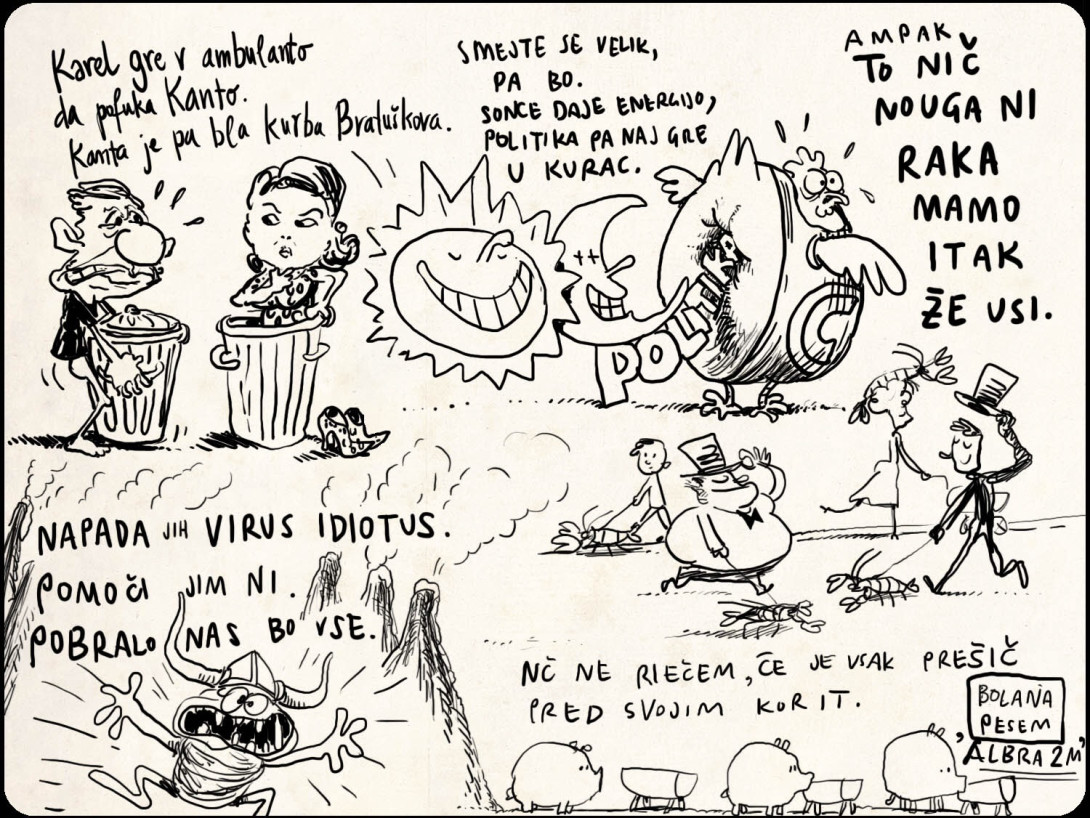 Imeli smo velike načrte, da bi zopet zagrizli v eno altruistično temo, pa nas je bolezen dobesedno pokosila. Gospa profesor je v karanteni in je ne bo, Dr. Horowitz ima popolnoma zabite sinuse, Fabio vnete bezgavke, a vztrajata, Ancelotti je itak bolan in bo umanjkal, le mladi Brgs ne ve, kakšen križ je bolezen. Zdravja se zaveš, ko si bolan in zato bomo danes ustvarili bolano pesem. Da bomo vedeli, kaj je zdrava pesem!
