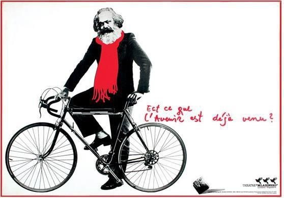 Leta 1983 je kombinacija Marxa in kolesa povzročila precejšnje razburjenje. Ožgala je celotno mavrico komunistične srenje. Stare komuniste v Beogradu je vznemiril že sam element kolesa - mi vam gradimo tovarne, kamione in drugo mašinerijo, vi pa serjete z nekakšnimi kolesi, so rekli. Že tako je bilo v jugoslovanskem kontekstu izpostavljat Marxa tvegano početje, da pa daš zraven Marxa še kolo, ki po svoje napoveduje premik leve scene v identitetne ekopolitike in ki podtalno deluje separatistično in torej alternativno, je pa že preveč. Kapljo čez rob je kasneje dodal še režiser Dušan Jovanović, ki je v priredbi plakata za neko predstavo zraven pripisal še cinično vprašanje: “Ali je prihodnost že prišla?” V francoščini, kajpak. Stare komunjare tudi niso prezrle Marxovega rdečega šala, ki v francoskem plakatnem kontekstu predstavlja anarhističen oziroma revolucionaren element. So pa, zanimivo, plakat drugače dojeli italijanski komunisti. Ti so Marxa na peciklu prevzeli za podobo svojega glavnega manifesta ob stoti obletnici bradatega kritika kapitalizma.