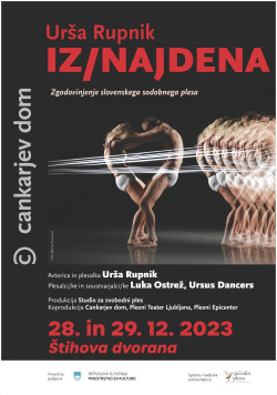 Ena takih je plakat za dogodek »Iz/najdena« Urše Rupnik, ki naj bi se bavil z zgodovinjenjem slovenskega sodobnega plesa. In zaplesali so možgani, saj se foto zgodba, zapisana v pomnoženih telesih suvereno sklada z naslovom – in domnevno tudi z zgodbo. Na desni imamo tako en kup možnosti, prototipov oziroma teles, na levo stran pa vlečejo ne ravno rdeče, a vseeno - niti, ki bi lahko ponazarjale miselni tok, idejo ali cilj. Med levo in desno pa se v centru dva lika, ženska in moški, znajdeta v »iznajdenosti«, torej v enkratni, edinstveni možnosti, napeta, kot so napete niti ali ideje. Precej filozofski prenos dobesednosti v likovni izraz.