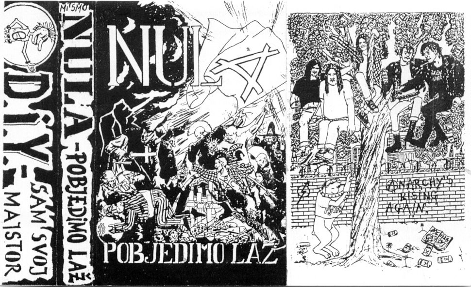 Gre za brezkompromisen hardcore-punk, ki je obračunal s Tudjmanovo Hrvaško, politiki vseh vrst, vojno, ki je plamtela, cerkvijo in ostalo golaznijo kapitalističnega sveta. Na momente je zadeva slišati celo kot anarho spoken word, to pa tudi po zaslugi dveh vokalov. V bendu, ki se je povil v letu 1991, konkretneje vkup spravil pa leta 1993, je godlo pet ljudi: Frua in Vlado na vokalih, Jorde na basu, Roša na kitarah in Meniga na bobnih. Poleg same kasete so zreven dodali še booklet, ki pa ga mi ne posedujemo, zato vas raje prepuščamo vpogledu v kreativo skupine NULA in kaseti Pobjedimo laž. Naj le še omenimo, da so material zanjo snemali med septembrom in decembrom leta 1993, v živo skozi mixer, v njihovem placu za vaje. Mi pa poslušamo komade A10, A11 in A13. Nula in Anarhija, Heroji, ludjaki, kukavice ter Žrtve... Pobjedimo laž ... ostvarimo anarhiju...