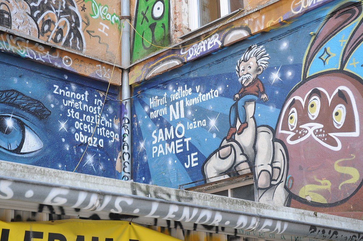 Slika: grafit na Metelkovi ulici, slikana 19. julija 2017 ob 13:30 z aparatom lastnika Marcela Haringa iz avstrijske Tirolske na lokaciji s koordinatami 46° 03′ 24″ N, 14° 31′ 00.14″ E.