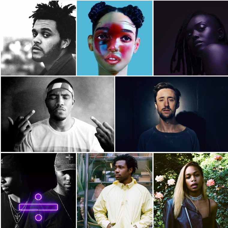 Alternativni r'n'b v nekaterih primerih privzame tudi bandovsko obliko, kar lepo ponazarja avstralski future-soul-r'n'b kvartet Hiatus Kaiyote, v vode r'n'b-ja, pogosto tudi alternativnega, pa seveda pogosto zaplavajo razni raperji. Med temi sta bila nedavno odmevna npr. Anderson .Paak in Goldlink, sicer pa je nekatere prvine te estetike že na začetku kariere privzemal in razvijal tudi Drake. Bolj relevantna tu pa je neka druga izdaja njegove založbe OVO Records. Lani januarja je namreč debitantski album izdal kanadski duo dvsn, ki s svojo večslojno produkcijo in prepričljivo r'n'b vokalno izvedbo predstavlja enega ključnih primerkov spajanja klasičnih ljubezenskih in seksualnih r'n'b vrednot s progresivno elektroniko. Poleg tega sta lani izjemno cenjena albuma izdala Frank Ocean in Solange, na sceno se je prebila Jamila Woods, najbolj speven album svoje kariere je ustvaril How To Dress Well, še veliko večje mainstream uspehe pa s prepevanjem o drogah, a z bolj konvencionalnim, radijskim glasbenim izrazom zdaj dosega The Weeknd.