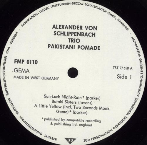 Alexander von Schlippenbach Trio [AvS / Evan Parker / Paul Lovens]: Pakistani Pomade. Free Music Production (FMP) 1973 [ponovna izdaja na vinilu: Cien fuegos 2015]