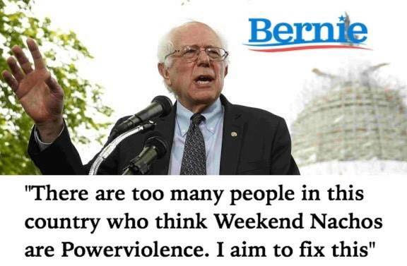 Na sliki: Socialistični kandidat za demokratsko nominacijo za predsednika ZDA, Bernie Sanders, je tudi začel vključevati občutljiva žanrska vprašanja v svoje govore. c/o Facebook skupine za glasbene meme I Wish I Was at Home Listening to Swans, ki je odlična, BTW.