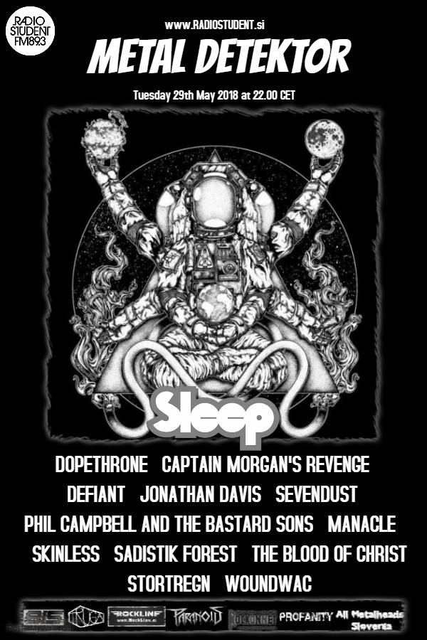 Tokrat malce drugačna oddaja - začnemo mastno in heavy z novimi Sleep in Dopethrone, nato malce alter s solo albuma ''KORN-aša'' Jonathana Davisa in povratniki Sevendust, nato pa še malce heavy s Philom Campbellom and the Bastard Sons ter domačimi Captain Morgan's Revenge.