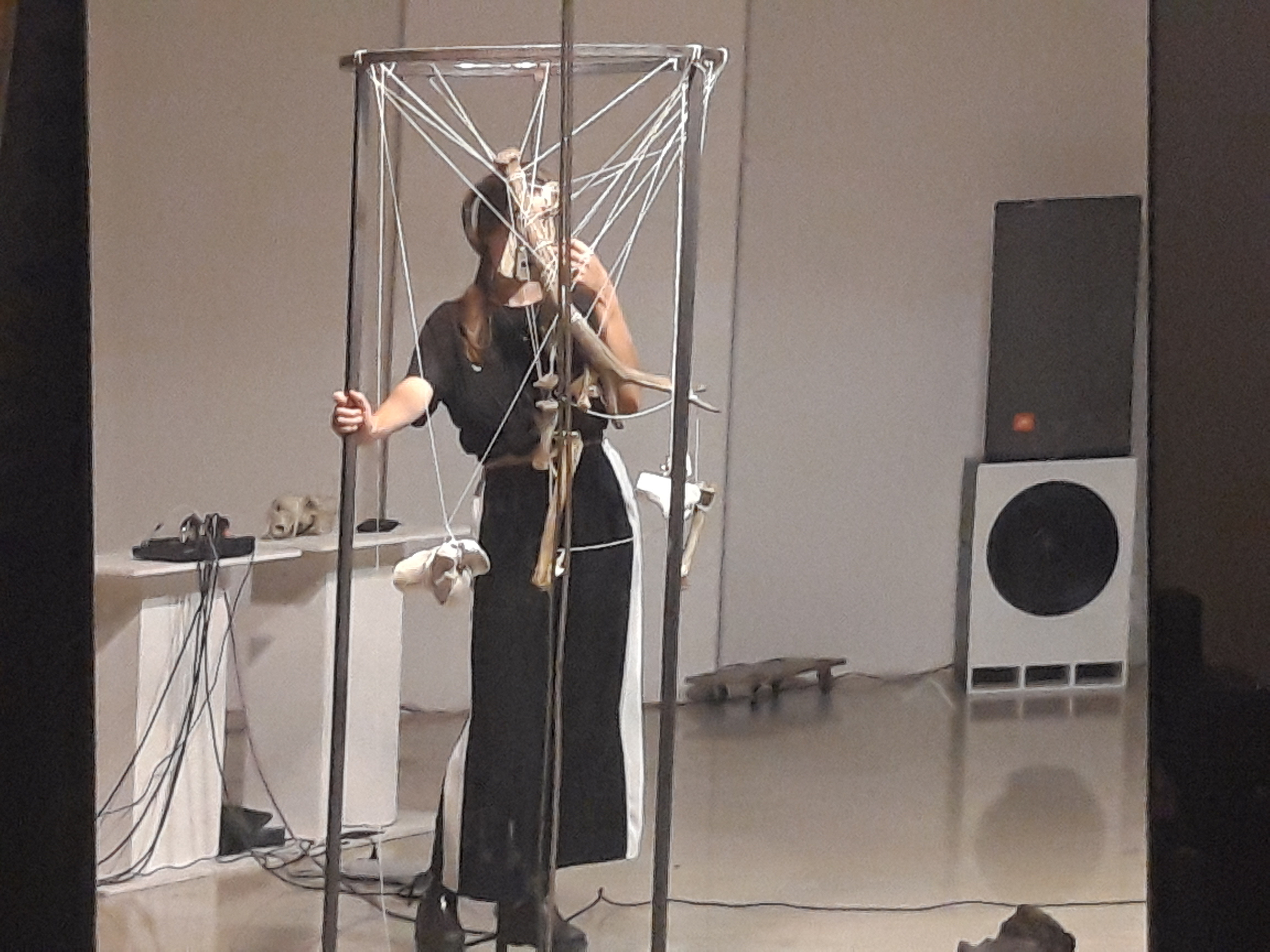 "PATTERNS LEAD ME HERE - Vida Vojić's annual return to Ljubljana and C² - this year comes in the shape of a series of performed "songs" within an installed space. Informed by experiences of reshaping the skeleton, the origins of music, the illusion of fixity and the electricity of truth through the body - this performance is a hymn to the structure that holds the art, to the motion that creates the sound and to the patterns that lead (us) here.