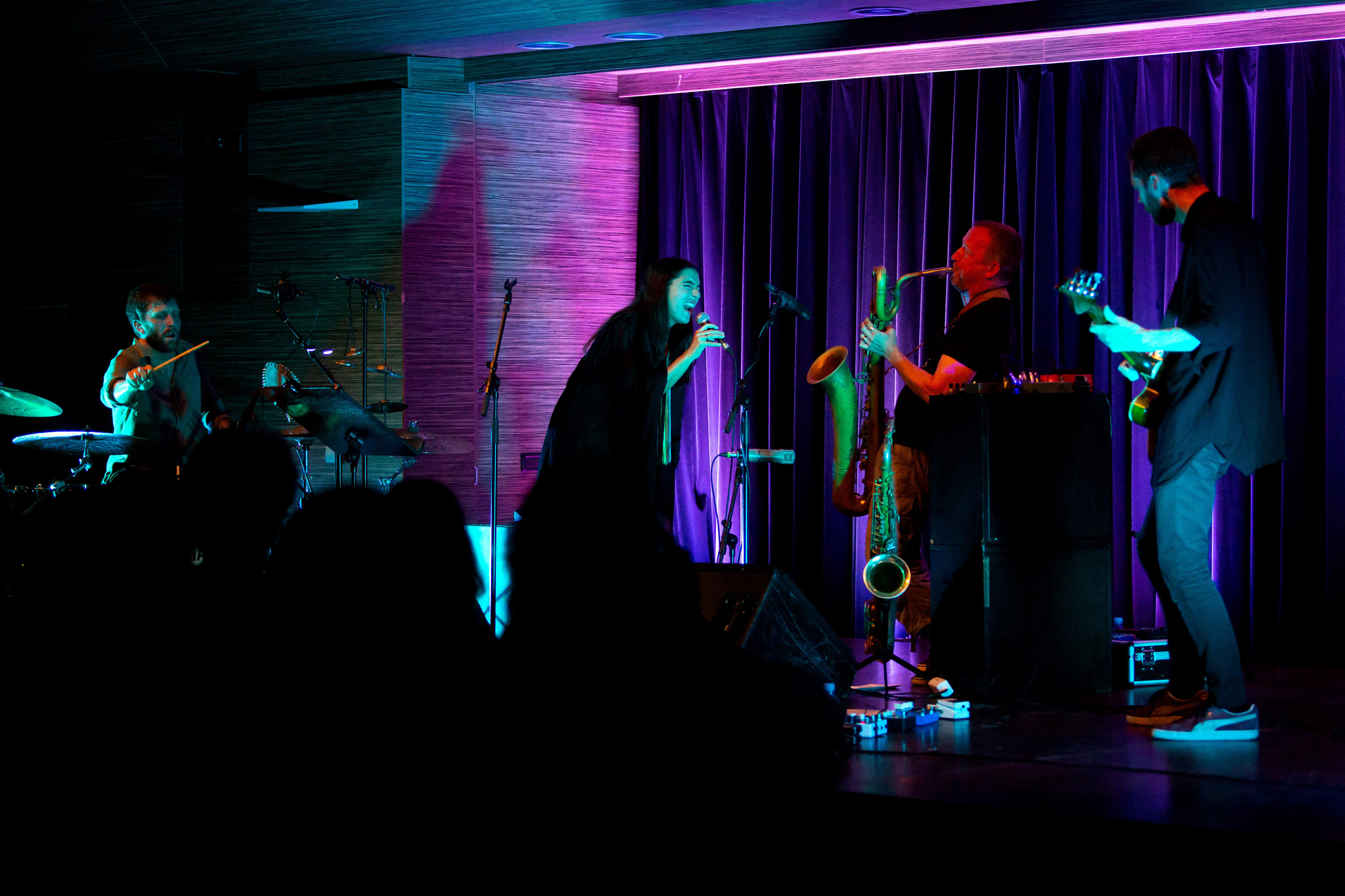 Na trenutke se je zdelo, da poslušamo kako pozabljeno pevko iz obdobja razcveta rocka, denimo kako nezakonsko hčer Janis Joplin, ki pa ima namesto dobro naoljenega bluesovskega benda za seboj trojico srboritih novojazzerjev pa tudi postrockerjev, ki njeno petje podlagajo z brnenjem, nenehno tenzijo, zvočnim migljanjem in odzveni. Dolgi komadi so idealna platforma za razvoj zvočnih idej benda: začetni saksofonski rif, ki se kmalu umakne v dronanje in iskanje modulacij, trdno podpirata razvejana basovska linija in dinamično, premočrtno ter na trenutke bolj razpuščeno bobnanje. Ko se je Mats lotil vijačenja in je pevka prav tako v tok poganjala razna zvočila, se je zvok benda približal soundtracku kakega napetega filma, spet drugič so z razvejanimi linijami na pihalih, ki so se vzpenjale od zemeljsko globokih in hrapavih do visokih piskov, dali jasno vedeti, da je ravno jazz tista sestavina, ki najbolj določa njihovo početje. Uglajeno in hkrati razkuštrano, nežno in robustno, zasanjano in psihedelično … in kar je še podobnih dvojic … Skratka, odličen špil, ki se je po ustvarjenih občutjih in gmoti zvoka lepo nastavil na Zornovo improvizacijo na orglah.