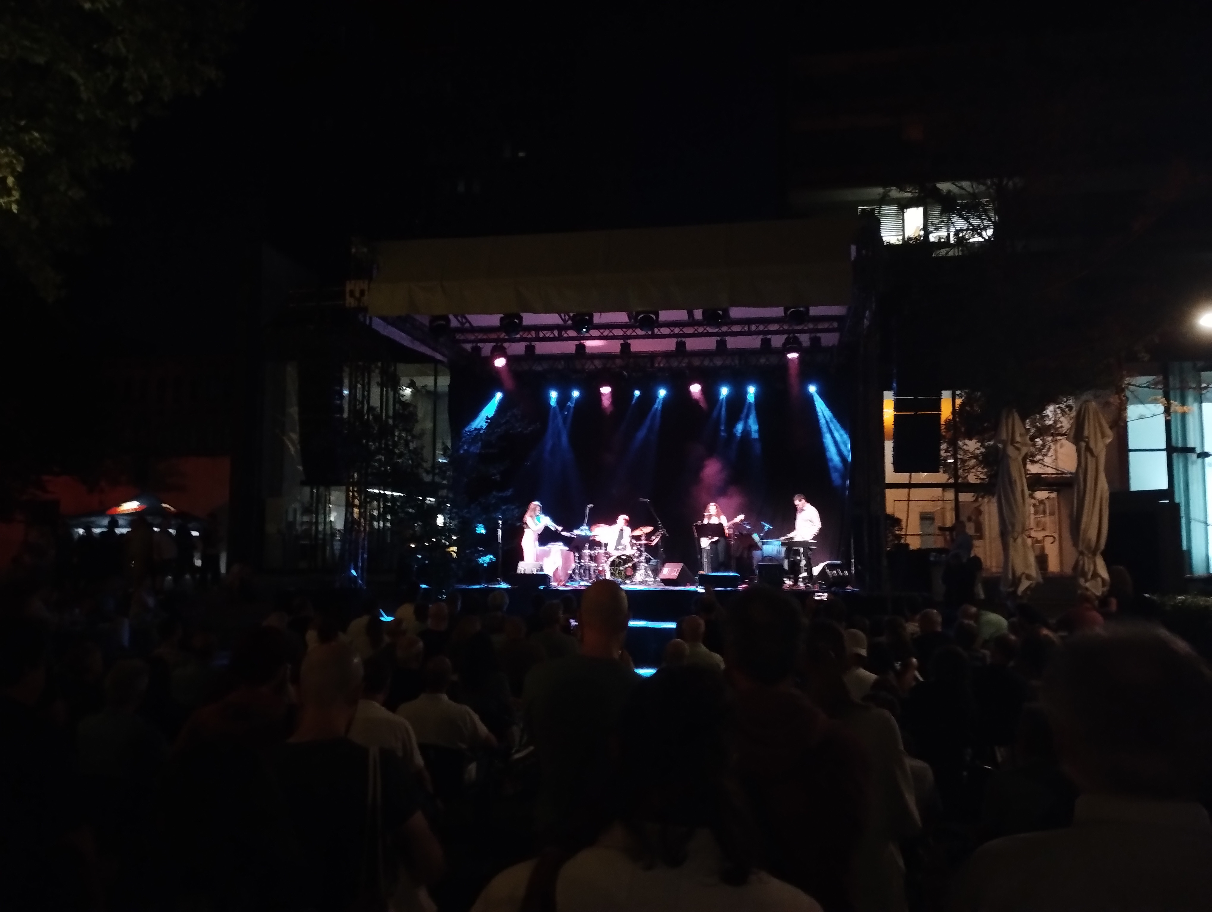 Prav lebdeči koncertni oziroma glasbeni značaj zasedbe Flock nas je z natripanim, brezkončnim, brezkompromisnim, sintetizatorsko zaznamovanim in na odru Parka Sveta Evrope verjetno najmočnejšim soundom od vseh nastopajočih pripravil na pravo demonstracijo opisane zaokroženosti in kvalitete Ahmed. Kvartet Yazz Ahmed tvorijo ob trobentačici še basistka Flo Moore, bobnar Josh Blackmore in vibrafonist Ralph Wyld. Zvočna podoba zasedbe je tako v veliki meri v rokah Ahmed in v palicah Wylda, groove pa je zelo oprijemljiv in v nižjih frekvencah tudi relativno odrezav. Vibrafonska dimenzija in izbira tega, v jazzu v živo relativno redko slišanega inštrumenta, je vsekakor dobrodošla, hkrati pa bend zaznamuje s specifičnostjo in širino, ki je vsekakor obsežnejša, kot če bi na odru ob Ahmed slišali klaviature. Na aktualnem albumu A Paradise in the Hold, ki ga Ahmed trenutno predstavlja, sinti namreč prevzamejo del zvoka, vibrafon pa slišimo nekoliko bolj v ozadju.