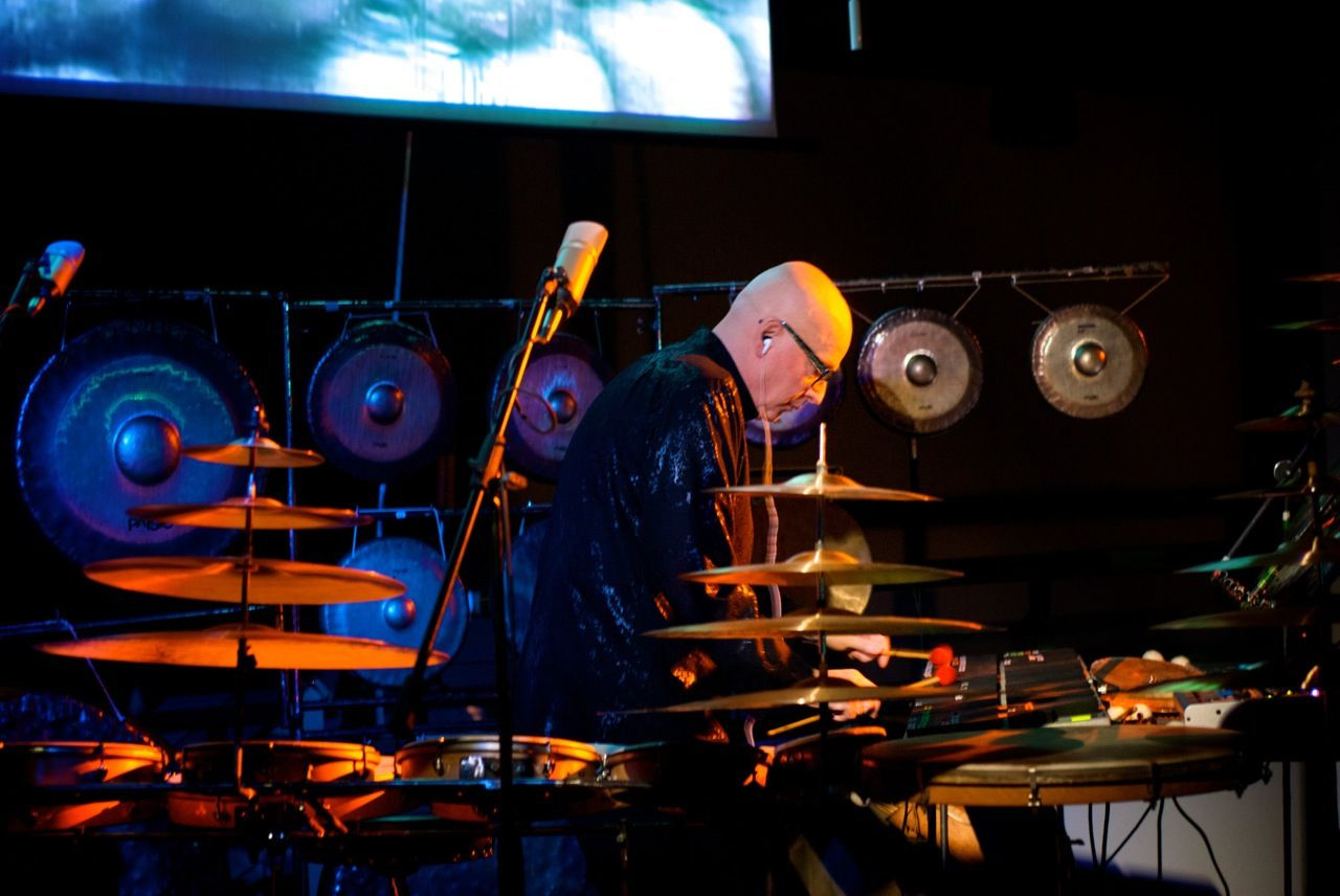 Andrea Centazzo velik del kreativne energije usmeri v glasbeno opremljanje filmov in videov, kar je v njegovih kompozicijah nedvomno slišno. Koncert je v tej maniri otvoril s kompozicijo iz multimedijskega projekta Einstein’s Cosmic Messengers, ki je navdih našla v teoriji relativnosti ter bolj specifično v detektorju gravitacijskih valov LIGO, ki je pred letom dni omogočil eksperimentalno potrditev obstoja gravitacijskih valov. Kozmičnosti v delu ni manjkalo, saj so reverbani gongi, posnete melodije zvončkov ter mehki synth padi prepričljivo predajali vzneseno kozmopolitskost, ki se je v kolektivno zavest usidrala že v 80-ih.