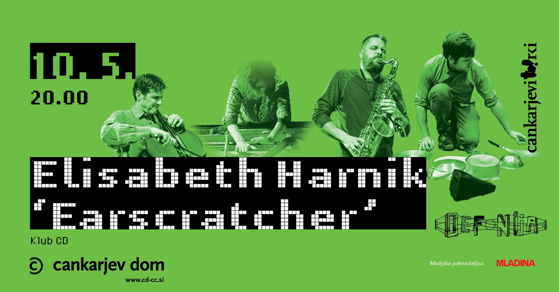 Tako se je v spisu Kako sem postal socialist lucidno izrazil Ivan Cankar, čigar 146. obletnico rojstva smo obeležili v torek. Na večer istega dne je Klub Cankarjevega doma zasedel kvartet avstrijske pianistke in skladateljice Elisabeth Harnik, se predstavil kot projekt Earscratcher in odmuziciral žuboreč, pretežno svobodno improviziran set. Ob napovedi zasedbe je Miha Zadnikar – kurator Defonije in soorganizator pričujočega koncertnega večera – bežno pripomnil, da bi Cankar, če bi še živel, bržkone rade volje prisedel k občinstvu na nastopu glasbenice kalibra Elisabeth Harnik. Nedolžna iztočnica ali ne, Cankar se je očitno še predobro zavedal materialnih kontradikcij kapitalističnega produkcijskega načina in njemu inherentnega razčlovečenja kulturne produkcije. Tako se zdi, da ne zgrešimo preveč, če rečemo, da bi danes vzljubil svobodno improvizirano godbo in njene premnogotere idejne implikacije, še zlasti tiste, ki razblinjajo etablirane hierarhije zahodne glasbene teorije in se sploh izmikajo že stoletja dominantnim koncepcijam glasbene umetnosti, vzporednim ravno z vzponom kapitalizma.