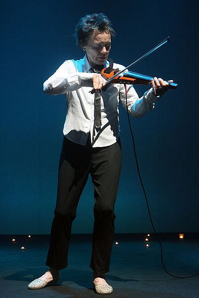 Laurie Anderson kritiko in razmišljanja o sodobni ameriški družbi perfromersko vešče in suvereno vije preko skrajno minimalističnih sredstev, preko okleščene odrske postavitve s svečami, mizo z elektronskimi glasbili in zvočili, malo zofo in mini projekcijskim platnom, ki se potapljajo v spretno vodeno igro luči, ki v spregi z zvokom kreira splošno občutje, ambient nastopa skozi raznolike čustvene in pomenske odtenke ter senčenja.Ta seveda zaživijo ob interakciji z zvokom, ambientalno elektronsko zvočno krajino, krajšimi violinskimi deli in seveda predvsem preko prezence performerkinega telesa, muzikalične geste ter glasu. Glas je osrednji nosilec nastopa, skozi katerega se izpoveduje zgodba. Ta je vešče krojena skozi razčlenjeno narativo, ki se zdi sprva fragmentarna, razpršena v različnih pozicijah in formah, ki jih prevzema govorka. Vendar se skozi pripoved tkejo povezujoče niti. Te predejo skupno pripovedno nit med Darwinom, aktualno ameriško politiko in realnostjo ter tibetansko Knjigo mrtvih, med zasebnim in družbenim, med kritično ostjo, humorjem in poetičnostjo. Slednja se v pripoved ne vpenja zgolj na ravni zvoka, oziroma glasbe preko dramatičnih gest violine, vpeljavo elektronskih ritmov, modulacijo in podvojitvijo glasu v skrajno nizek, dramatičen moški glas in repetitivnimi refreni, kjer glas preide v petje, temveč preko sanj. Z njimi se jasna pripovedna nit zasenči, a hkrati ostaja v polju konkretnega, preko fenomena fosfenov, barvnih odtenkov, ki jih zaznavamo ob zaprtih očeh. Fosfeni so luknje, zevi v pripovedi, ki skozi estetsko gesto vanjo vpeljujejo zgolj slutnjo lepote in pozitivnosti v blatni dol. Tega kot osrednji del zajema zgodba o šotorskem naselju na gozdnih obronkih New Yerseya. V njej Laurie Anderson zamenja svojo pripovedovalsko pozicijo v zorni kot poročevalca, novinarstva, ki brez empatije spremlja dogajanje in osebe v naselju. Glasbeni kolegi iz tega takoj izvlečejo dramatično gesto, ki jo Andersenova ne ponudi, v smislu: 'človeku na dnu ostanejo le še prazne vljudnostne fraze'. Seveda se lahko vprašamo, zakaj se ni Andersenova odpravila k svojemu domovanju dosti bližje urbano šotorsko naselje pri Wall Streetu, a to tu ni bistveno. Ravno preko zavzetja te pozicije golega opazovalca, opisovalca namreč Laurie Andersen razpre polje vljudnostne fraze kot temeljno zagatno polje, v katerem se nahajamo vsi. Paradoksno se v tej točki Andersonova skozi odmaknjeno pozicijo ravno in edinkrat angažirano pozicionira v sami pripovedi, hkrati pa se izogne poziciji pokroviteljstva in praznega sočutja. Kvaliteta njenega nastopa leži ravno v spretnem uravnavanju dramatične geste, ki se nikoli ne razbohoti v pretirano ekspresivnost in povednost. To Laurie spretno dosega tako na interpretativni ravni glasu, kot v glasbi sami. Žal se ta moment v sami celoti nastopa kaj kmalu izgubi skozi nepotrebno rahljanje zgodbe. Skozi zdrs v zasebno nam poda sicer povsem simpatično štorijo o, v New Yorku med muskontarji in v umetniški sceni dobro znani njeni pokojni psički, ki je imela svojega učitelja, pardon, trenerja klavirja. Je že res, da je v edinih projekcijah Laurie Anderson prikazala žival kot ustvarjajoče, umetniško bitje, nenazadnje je v zadnjih letih v Avstraliji priredila koncert za pse, a hkrati so te štorije tudi razlog, da jo nekateri umevajo kot ekstravagantno umetnico v slabem pomenu te besede.
