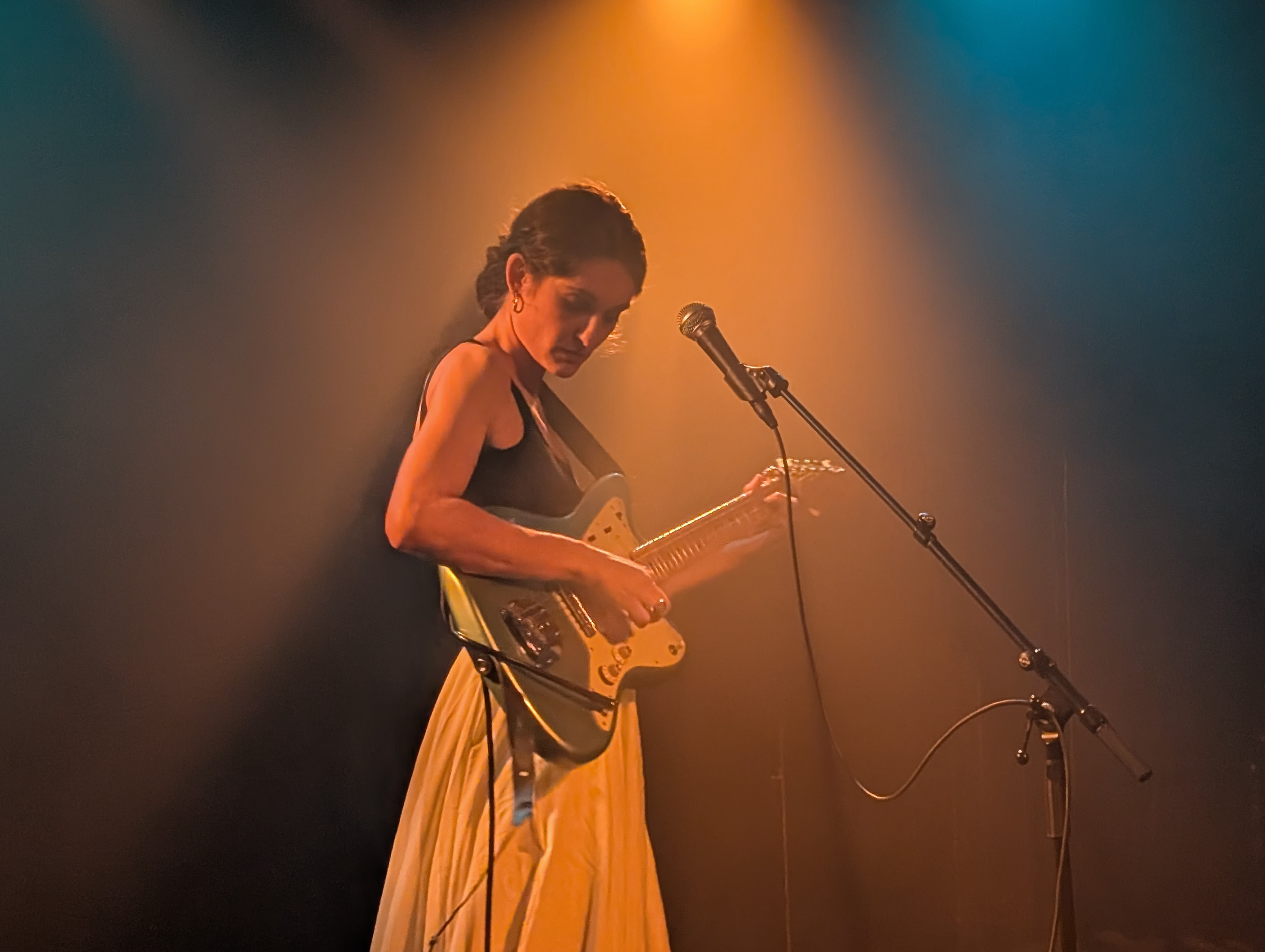 Sophia Djebel Rose, francoska kantavtorica maroških korenin se je na svoji turneji po Evropi ustavila tudi na Metelkovi in že naslednji dan krenila naprej proti jugovzhodu. Predstavila je svoj nedavni album Sécheresse, ki je medijsko in promocijsko zelo dobro podprt, zato ne preseneča, da jo je gostila prav Gala hala. Med vsemi ljubljanskimi prizorišči se Gala še najbolj ozira na trende alternativne glasbe, čeprav bi glasbeničin nastop sam po sebi morda bolj pristajal kakšnemu drugemu klubu. Na oder, ki žanrsko ne diskriminira, je pred maloštevilno publiko stopila sama, opremljena le z mikrofonom, pedali in prelepo sinjemodro lesketajočo se električno kitaro Fender Jazzmaster.