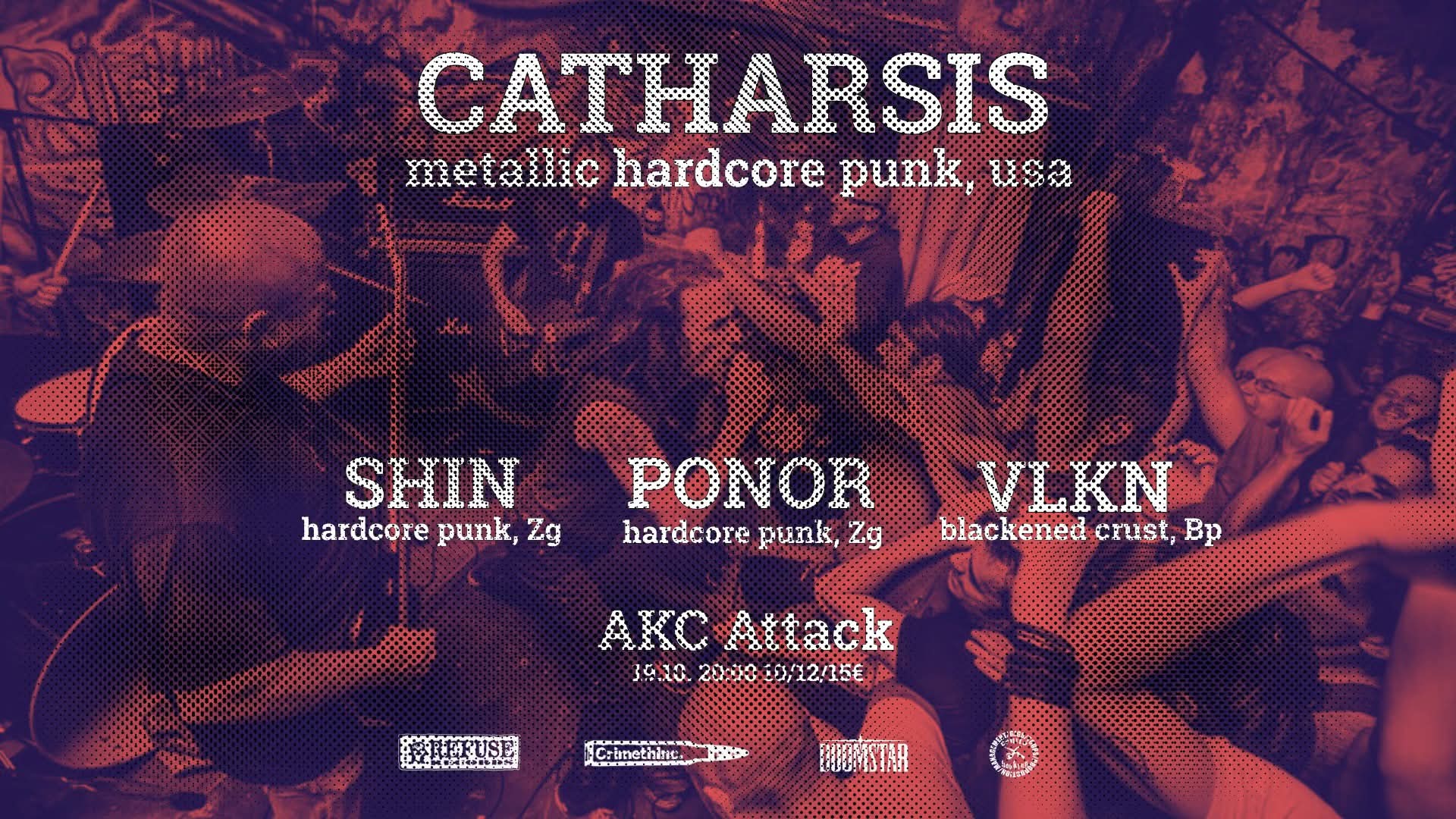 Kdor pozna hardcore z močno dozo anarhizma in aktivizma, pozna ameriške Catharsis iz Severne Karoline v ZDA. Do zdaj so izdali tri dolgometražce, od izvorne postave pa sta v bendu le bobnar Alexei Rodriguez, ki se ga morda spomnite iz zasedb Prong, Walls of Jericho in 3 Inches of Blood, ter vokalist Brian Dingledine, ki je med drugim osrednja oseba anarhističnega kolektiva ter knjižne in glasbene založbe CrimethInc., na punk in hardcore sceni pa je znan kot pisec in urednik kultnega fanzina Inside Front. Catharsis so obstajali med letoma 1994 in 2002, nato so se leta 2013 vrnili ter se pri tem osredotočili na krajše turneje in občasne festivalske nastope. Diskografijo kronajo trije albumi: Samsara, Passion in nedavno izdani Hope Against Hope, ki ga je na valovih vašega omiljenega radia recenziral kolega Luka Bevk. Prav prihod tega albuma nas je navdal z upanjem, da se bo bend odpravil v Evropo in se ustavil tudi pri nas ali pa vsaj v naši bližini.