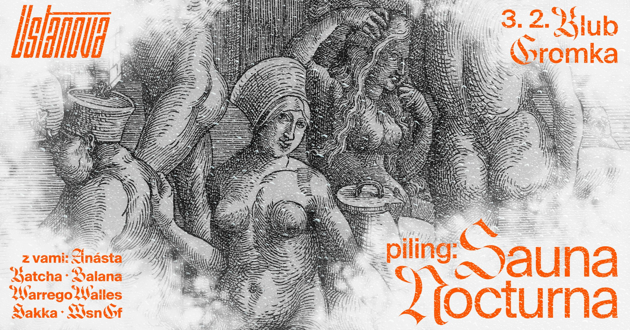 V tokratni oddaji bomo prisluhnili intervjuju z Evo Djaković, članico progresivnega ljubljanskega kolektiva Ustanova, v katerem nastopa pod imenom Đakka. Kolektiv poleg raznovrstnih nočnih programov krepi skupnost z iskanjem skupnih točk med družbo in klubskim prostorom. Nocoj, v petek, 3. februarja, se bo v Klubu Monokel Klubu Gromka odvijala nočna savna pod imenom ριℓιηg: Sauna Nocturna. Za pester vozni red bodo poskrbeli_e balana, Katcha, Warrego Valles, Anásta, msn gf in Đakka.