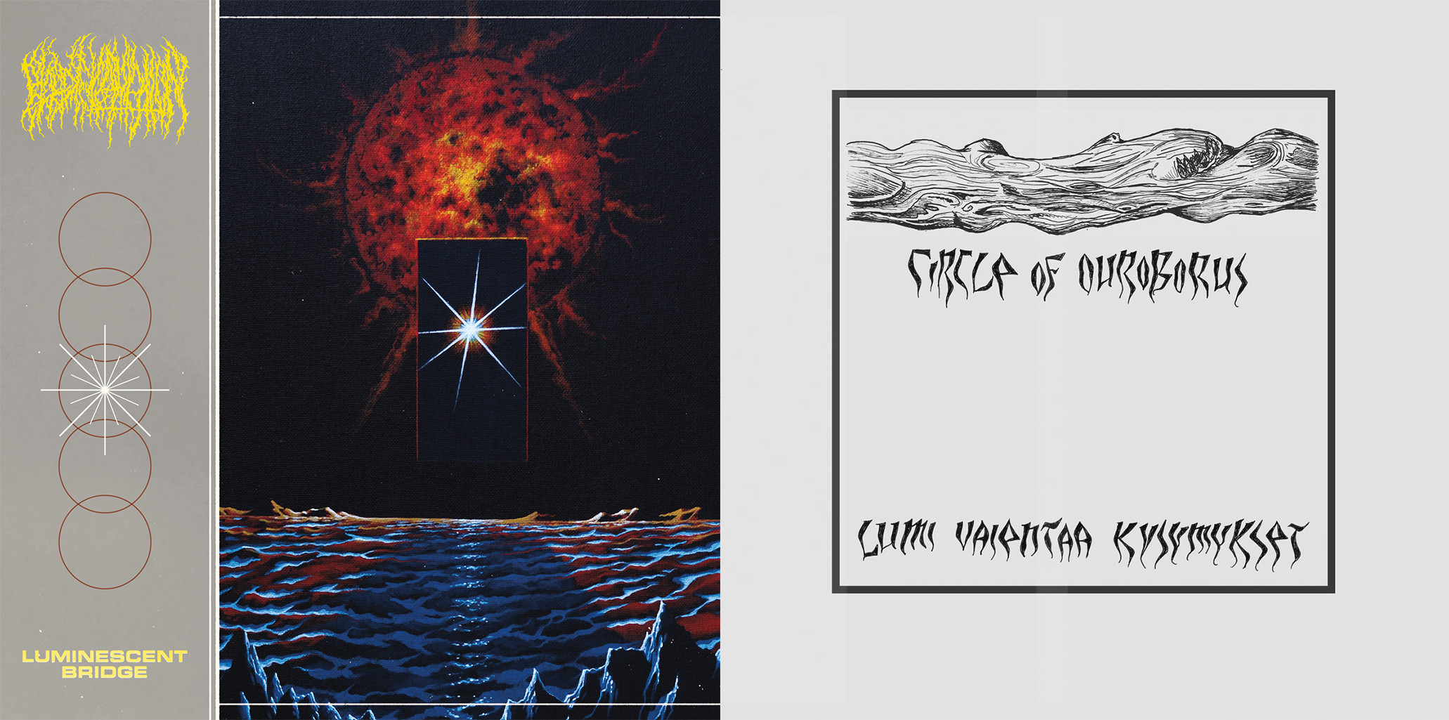 Prejšnji torek smo v Tolpi bumov napovedali, da bo letošnja trgatev metalskega podzemlja tradicionalno dobra. Tokrat bomo obrali še dva sadeža. Prvi bo od Blood Incantation, ameriških deathmetalcev, tehničnih mojstrov kompozicij, ki so pri Century Media izdali maksi singel Luminescent Bridge, drugi pa od finskega blackmetalskega dvojca Circle of Ouroborus, ki je pri grški založbi His Wounds, specializirani za obskuren black metal in dungeon sint, izdal studijski album Lumi Vaientaa Kysymykset