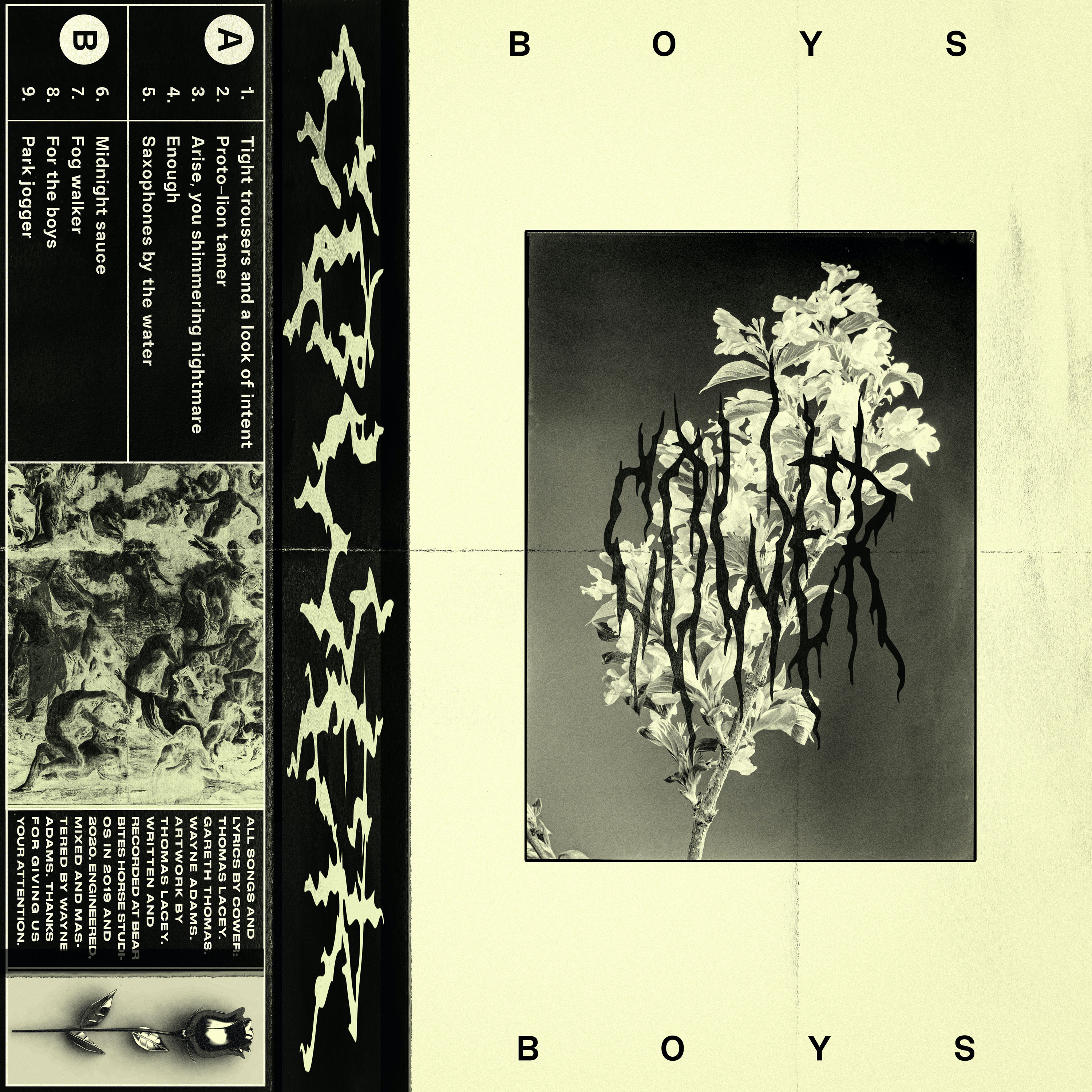 V današnjem osrednjem kritiškem terminu gostimo bend oziroma kolektiv Cower in njegov debitantski album Boys. Izdelek je izšel pod okriljem založbe Human Worth, ki se kljub mladosti in zgolj petimi izdajami lahko pohvali z naborom finih in pomenljivih glasb. Poleg danes obravnavane je v njihovem katalogu še plata angleških hrupnežev Modern Technology, kratka izdaja ambientalnega londonskega pianista Evana Gildersleeva ter imeniten prikaz razgrajaške otoške scene v dveh delih, imenovan Human Worth Vol. 1 in Vol. 2. Omenjena založba pa ni pomembna le kot povezovalni in prikazovalni člen otoškega podzemlja – del denarja od vsakega kupljenega izdelka gre namreč v dobrodelne namene.