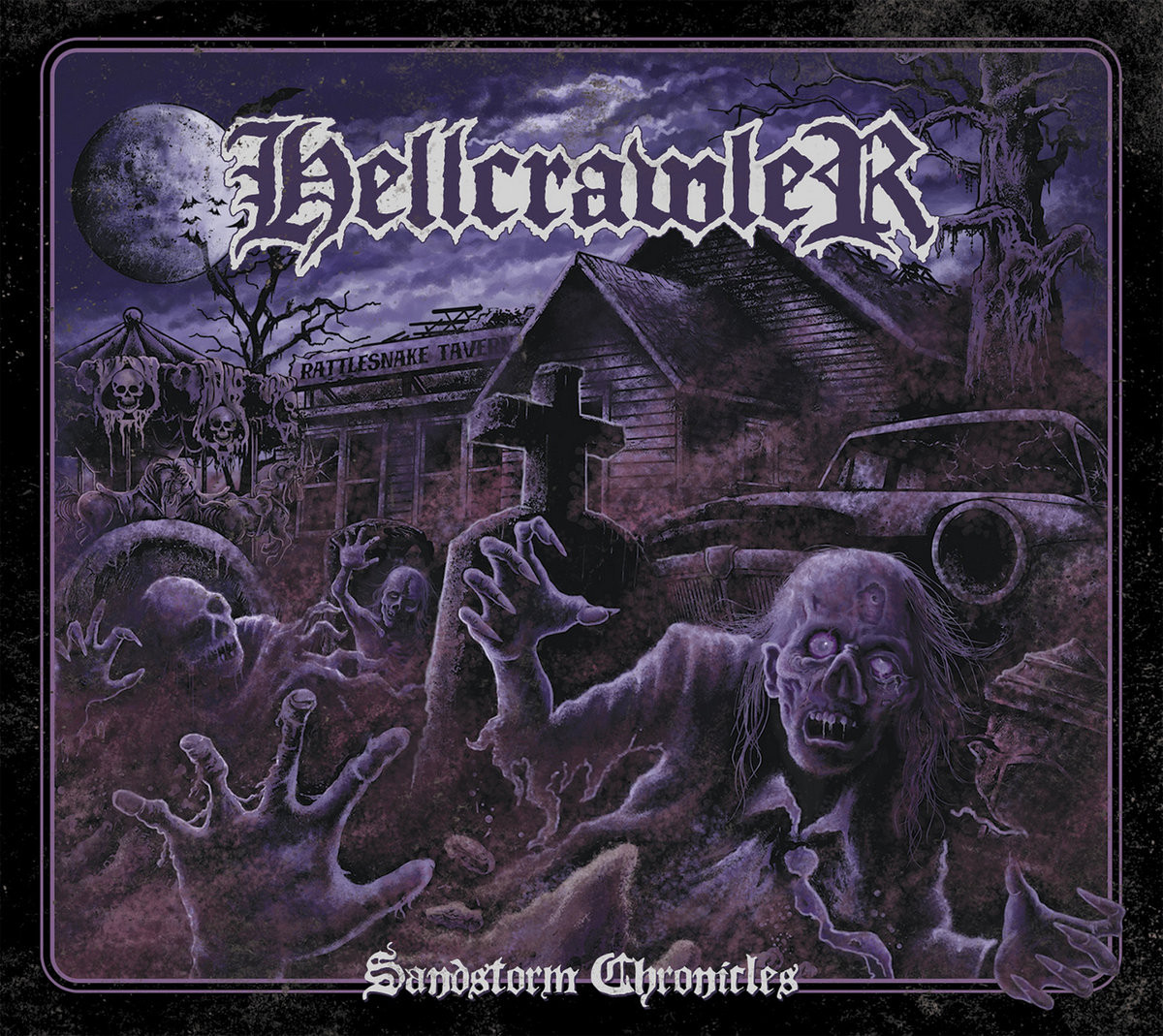 Kitarsko je Sandstorm Chronicles res zanimiv hommage stari švedski death metal šoli, saj nas rifi spomnijo na klasične Entombed, Dismember, Grave ipd., čeprav sam razvoj riffa ali kakšna pasaža velikokrat vodi tudi na bolj angleška tla h kultnim Benediction in Cancer. To je zelo očitno v prvih dveh komadih, Unholyverse in Death Park. S komadom Grim Moira pa se opazi, da so veliko črpali tudi v mračni melodiki angleških legend Bolt Thrower, medtem ko predvsem osrednji del komada Sea Of Storms spomni na Edge Of Sanity. A tu ni mesta za kakšne pretirano žalostno zveneče dele. Sandstorm Chronicles so zgodbe boja in preživetja, zato so tudi rifi napadalni, solaže kratke in nevsiljive, čeprav odigrane z dobro mero feelinga. Vendar pa, kot rečeno, solaž tipa At The Gates tu pač ne boste našli. Hellcrawler seveda ne pozabijo niti na kitarske harmonije, kakršne so od Maidnov in Priestov pobrali, a z nižjimi toni morbidizirali predvsem Dismember. Nekaj poklona Motorhead je čutiti predvsem v komadu Wasteland Shamanism, ki Hellcrawler poveže tako z Lemmyjem, kot z Discharge, predvsem pa z zadnjo plato Disfear. Seveda je končna kitarska podoba očitni hommage legendarnemu Sunlight Studios, pa tudi sam mastering očitno kaže na to, da je bil izbor kultnega švedskega death metal akterja, Dana Swana, pametna poteza. Zadeva namreč ni tako glasna, kot bi bila, če bi jo v roke vzel ameriški Erik Rutan ali pa moderno zveneča, kot če bi jo zagrabila Šveda Daniel Bergstrand oziroma Jens Bogren.