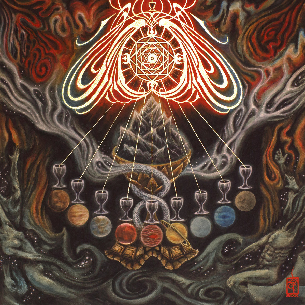 Oba projekta sta večino svojih izdaj objavila v sodelovanju z italijansko založbo I, Voidhanger, ki je trenutno vsekakor ena izmed vodilnih založb v svetu sodobnega in progresivnega black metala. V njenem katalogu najdemo ogromno sorodnih bendov, ki puščajo zavidljiv pečat na podzemni sceni, denimo Esoctrilihum, Haunter, Tchornobog in Skáphe, ki vsi krožijo v podobni orbiti progresivnega in atmosferičnega black metala. Vse izdaje založbe I, Voidhanger so tudi izjemno grafično dodelane. In tudi album, ki se mu tokrat posvečamo, ni izjema. Na platnici je nekakšna alkimistična slika, ki prikazuje naše planete in planetoid. Glasbeni material je natisnjen na tri plošče prozorne jantarne barve z vlitimi odtenki črne. Notranji paneli ovitka so opremljeni z motivi iz vesolja. Prava zbirateljska reč torej!