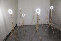 Formalno gre za preproste skulpture, ki po višini malce manjše od človeka, sestavljene iz samostoječih vej, ki se tal dotikajo v treh točkah. Konstrukcije se zaključujejo v okroglih neonskih lučeh, ki svetijo z različnimi snopi svetlobe. Sredi vsakega stebla je pritrjen vijak ali reciklirani kovinski del, ki pod napetostjo oddaja tresljaje. Objekti so med seboj povezani z električnimi kabli, medtem ko računalniško programirana informacija poskrbi za odzivnost. Aktivne konstrukcije prično oddajati tresljaje, kar zaradi spojenosti s podlago povzroči krožno premikanje.