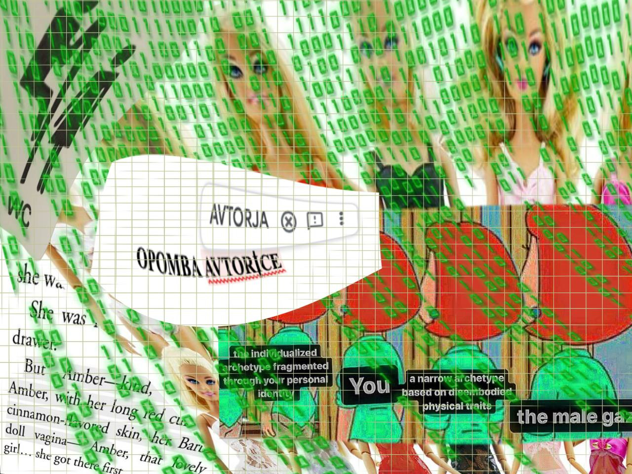gameplay: nekoč med branjem de beauvoir in federici pogruntaš, kako zelo je spol vse; in potem med branjem butler in firestone pogruntaš, kako zelo je spol nič. socialni konstrukt pa je še vedno zažrt, prisesan in pripisan vsaki normi, pravilu, pričakovanju, relaciji, interakciji, namenu, odnosu, vlogi, izrazu, dejanju, besedi, poziciji, stanju. razumeš, kako binarnost ne pomeni le sistema dvojega, temveč tudi presojanja enega proti drugemu. razumeš, kako je vsaka dodatna femminizirana nalepka za žensko* dodatna marginalizacija.