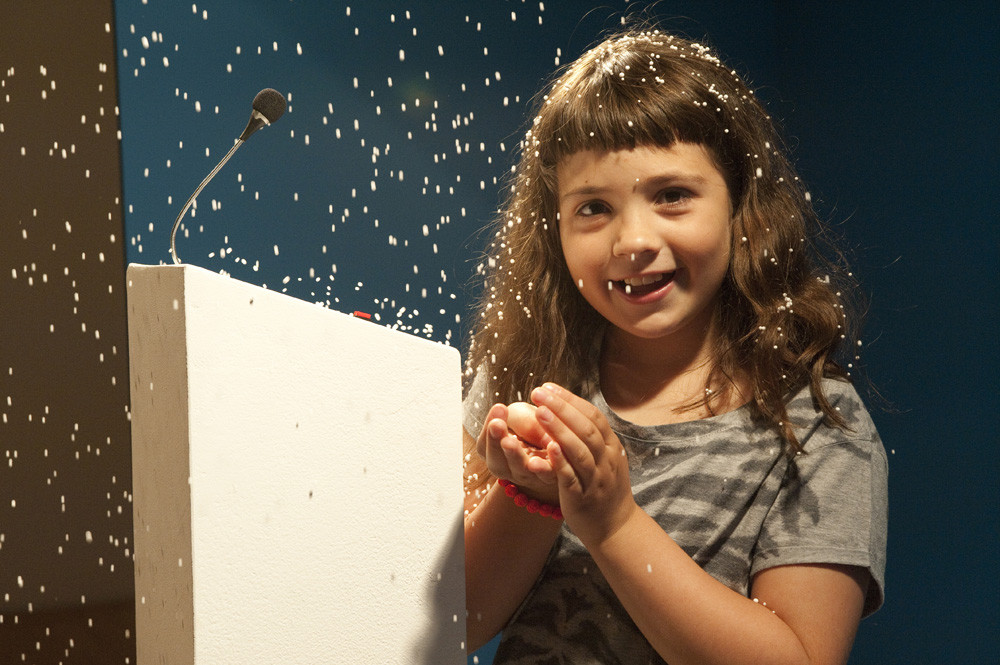 A ker nam je ovinkarjenje v navadi, bo vendarle treba povedati tudi nekaj besed o sami razstavi oziroma še rajši o avtorju. Pravzaprav se bomo govoru o razstavi karseda izognili, saj je razstava čudo-vita v strogem pomenu besede. Razstava pač računa na začudenje in čudenje. Otroci se na njej počutijo kot odrasli in odrasli kot otroci. Kar seveda pomeni, da informacija o posameznem delu na razstavi gledalca oropa za tisto pristno začudenje, ki ga doživijo tudi tisti, ki so že vsega vajeni. Morda najbolj ravno oni. No, vendarle poslušate rubriko Fine umetnosti, ki iz začudenja ustvarja vednost tako, da so »spoilerji« neizogibni. Vadim Fiškin je slovenski umetnik iz Rusije. Sem naj bi prišel na povabilo Živadinova, saj je bil scenograf pri Molitvenem stroju Nordung, ljubezen pa ga je potem tu tudi zadržala. Na prvi pogled se zdi, da se ukvarja z znanostjo; no, morda bi bilo bolj primerno, če bi rekli, da ga tehnični izdelki in metode zanimajo, ga čudijo. Verjetno veliko poslušalcev pozna vsaj eno njegovo delo. Če ste se sprehodili kdaj čez muzejsko ploščad, ste pred MSUM-om verjetno opazili žarnico s fenom. No, to je Fiškinovo delo »Zvezda premičnica«; v ličnem zvežčiču, ki spremlja razstavo pa si imate tudi načrt za izdelavo svoje lastne zvezdice. Razstavni zvežčič že sam napove slog in vsebino razstave, saj posnema dobro znana »navodila za uporabo«, ki ponavadi spremljajo raznorazne tehnične izdelke, kot so pralni stroji ali pa televizorji. Na zadnji strani pa je sledeča deklaracija: