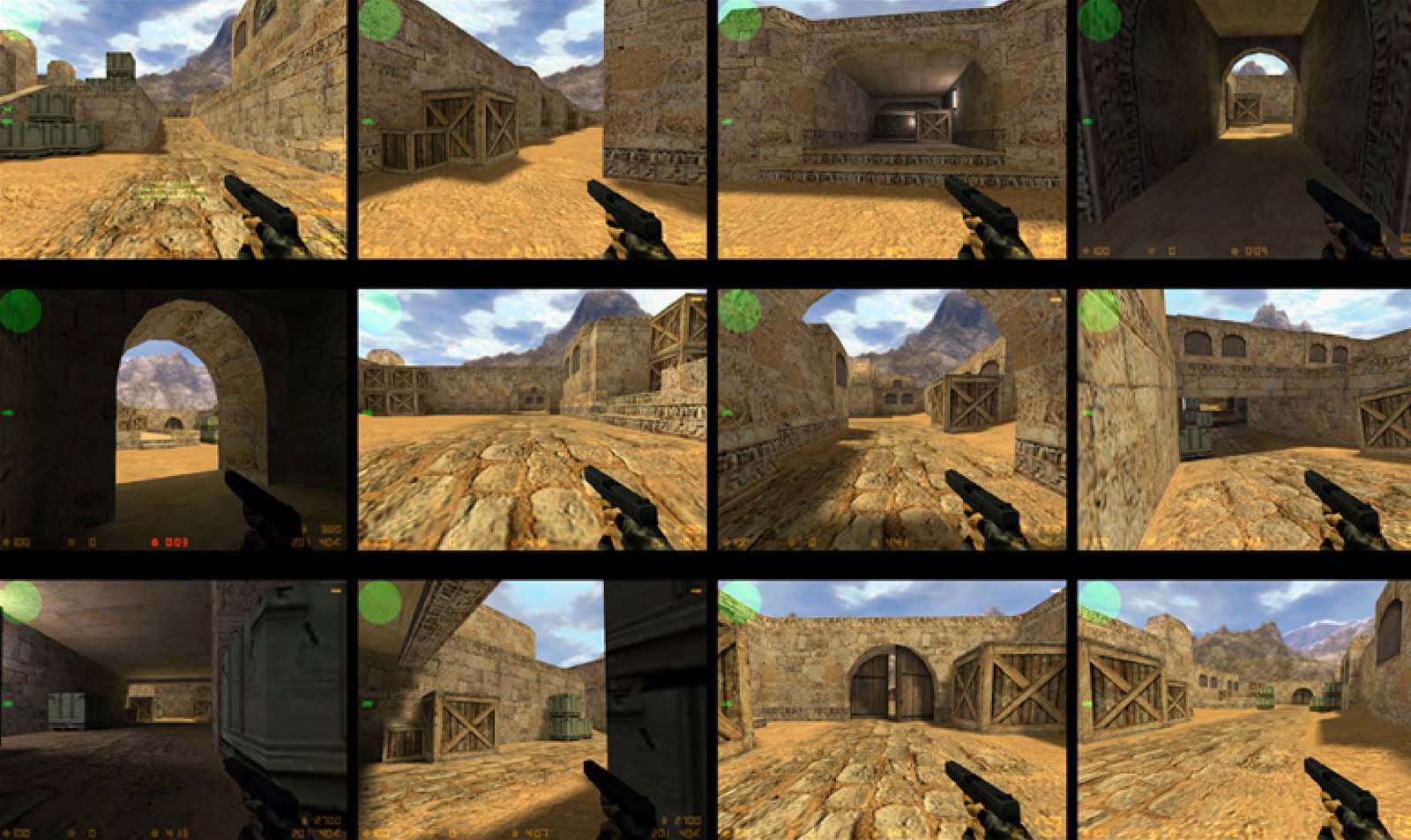 Prvoosebni streljačini je posvečen dobršen del razstave GO!GO!GO!. Poleg 3D natiskane makete mape dust se na projektorju predvajajo zbrani Youtube posnetki različnih ljubiteljskih interpretacij omenjenega prostora. Obiskovalec si lahko iz kartonskih kartic izreže očala s Counter Strike pogledom, torej tisto podaljšano virtualno roko z avtomatičnim orožjem, ki se v igrici nahaja v desnem spodnjem delu ekrana. Navodila za uporabo sicer predpisujejo, da se z njimi ravna previdno, saj utegnejo v realnem svetu povzročiti val neprimernega vedenja.