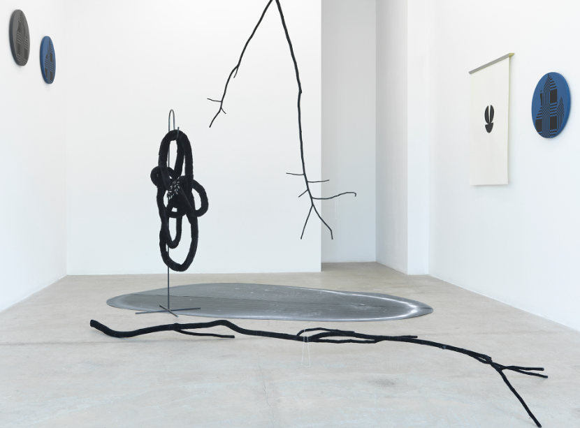 Obkroženi z dvodimenzionalnostjo podob se v središču postavitve nahajajo trije tridimenzionalni objekti. Dve s temnim blagom oblepljeni veji, s katerih visi gracilen nakit, in tretji element, neprepoznavna viseča gmota vrvi, ki visi s kovinskega nosilca. V konec vrvi so zapičeni majhni kristalčki. Kot so pri kamenju s povečavo in raztegovanjem poudarjene teksture na dimenzijah, ki jih nismo vajeni, in pri plamenih z vzorci, ki navadno pridejo v paru s srajcami, in ne kot polnilo stiliziranih obrisov, je naša pozornost pri tridimenzionalnih objektih prav tako ulovljena z neko motnjo. Ta je vsebinske narave in presega zgolj vmešavanje v strukturne lastnosti objekta ali podobe.
