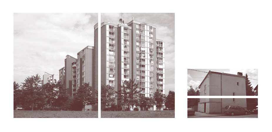 Nekaj hiš stran me preseneti kup propadajočega betona v obliki hiše po fasadi katere so navidez naključno razmetana okna. Fasada hiše, ki gleda na ulico, je skoraj brez odprtin. Odpira jo le zelo ozko podolgovato okno, ki je videti kot zareza v fasadi hiše. Na njenem vogalu je izpostavljena elektro omarica, kot da bi želela biti kar se le da pri roki za morebiten »servis hiše«. Tudi ta je videti kot velik slabo vzdrževan transformator naknadno predelan v enodružinsko hišo. Odprtine na fasadi hiše so vsaka svoje oblike in velikosti, razporejene pa so kar tako, brez očitnega reda.