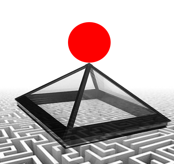 Po Tschumiju gre za razcep med prostorom kot pogojem in prostorom kot formulacijo, za razcep med idealnim prostorom - prostorom naših duševnih procesov - in realnim prostorom, ki je proizveden z družbeno prakso, za razcep med racionalno jezikovno igro in čutno izkušnjo. V iskanju odgovora avtor ta razcep vzporedi z zgodovinskim uvidom, da so arhitekturne avantgarde že mogle preseči opozicije med nasprotji, kot so struktura in kaos, ornament in čistost, trajnost in sprememba, ter da izkušnja kaže, da so se te opozicije izkazale za komplementarne ter da dematerializicija arhitekture v ontološko formo, beri: piramida, in čutno izkušnjo, beri: labirint, predstavljata podobno opozicijo, ki jima je treba najti »tretjo stvar«, najti mesto, v katerem se ta opozicija odvije.