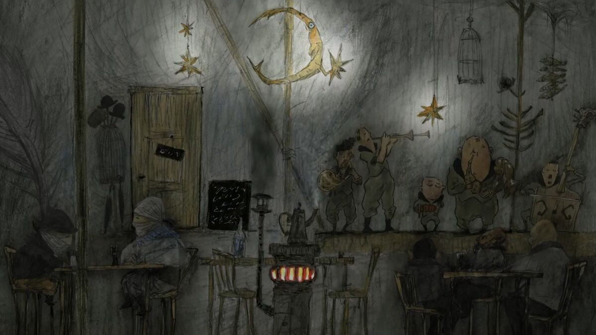 Edina, ki potujeta med vsemi v filmu prikazanimi kraji, sta drobna trobenta in pero. V nekaterih risbah sta zgolj statičen element ozadja, v drugih drobna šala. V zadnjem prizoru filma se animacija trobente uskladi z glasbo v ozadju, s čimer zvok postane element filmskega dogajanja. Pero s svojim premikanjem za seboj pušča črto. Zdi se, da se ozira in popisuje dogajanje, ki pa se na platnu nikoli ne pretvori v pismenke, zapisovanje se zgodi kasneje, ko je spomin že meglen. Z načinom upodabljanja film nekoliko romantizira podobe opustelih vasi, delavcev, revščine in brezupa. Navsezadnje se do njih prebijamo skozi meglice spomina, ki se pretaka v pripoved o sanjah.