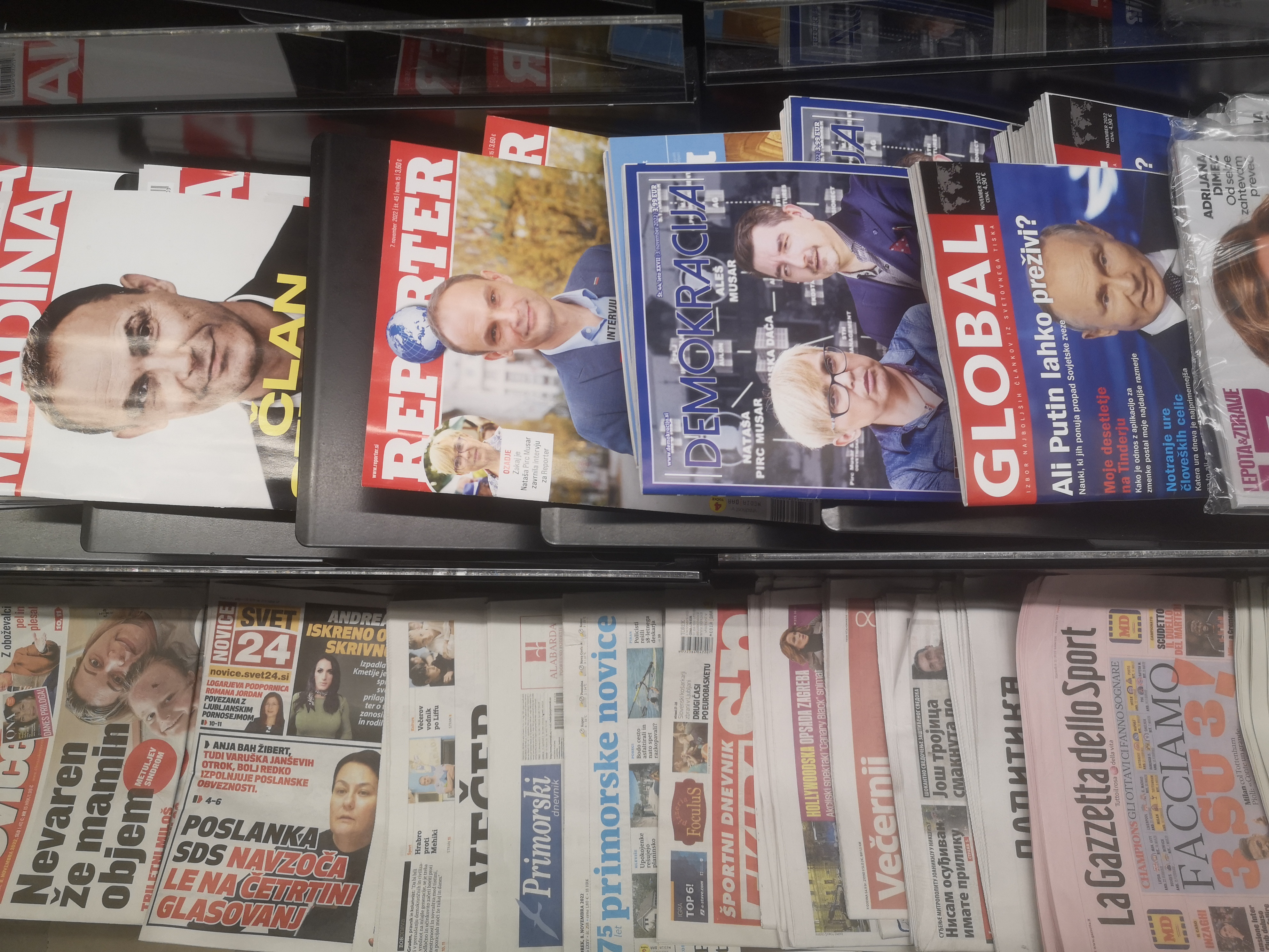 Že v Maxi Marketu smo opazili, da nekatere police krasi kar trideset ali celo petdeset izvodov iste revije. Slutnjo, da nekatere revije in časopisi ne gledajo le na prodajo, ampak tudi na vidnost in izpostavljenost, ki se mi je porodila že v Maxiju, je posredno potrdila tudi tamkajšnja prodajalka.