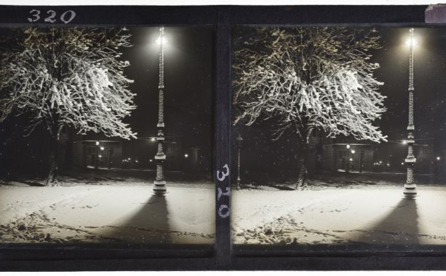 foto: Franc Ferjan, Ulica v Ljubljani, 1920 ̶ 1930, črno-beli stereo diapozitiv (MG-LJ)