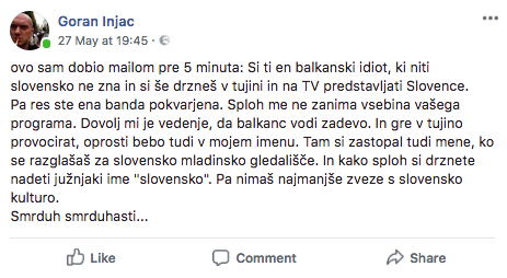 Zadeva, ki je v polju normalnega in norega trenutno veliko bolj pereča, je normalizacija sovražnega govora, ki jo je še posebej spodbudila sovražno naravnana in ustrahujoča predvolilna kampanja nekaterih desno usmerjenih političnih strank. Sovražni govor se čedalje bolj upravičuje s “svobodo govora”. Tako so skušali upravičiti tudi sicer razmeroma miren protest neonacistične skupine, ki je v Brnu prekinila predstavo Naše nasilje, vaše nasilje - pravzaprav pa je slednja skupina s tem efektivno posegla v svobodni govor in svobodo umetniškega izražanja. A veliko težje bodo s “svobodo govora” upravičili neposredno rasistične zmerljivke in celo grožnje, ki jih je nedavno s strani slovenskih državljanov prejel Goran Injac, umetniški vodja Slovenskega mladinskega gledališča, ki je sicer tudi produciralo prej omenjeno predstavo.