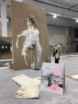 V ogromnem, trenutno izpraznjenem delu poslopja, sta se na dveh hektarjih raztezala dva rezidenčna, performativna in hkrati razstavna prostora. V prvem se je zgradil tristometrski labirint z osmimi sobami, ki je bil pripravljen, da v njem predstavimo razbite sanje Čehovih Treh sester. Druga hala pa je služila kot slikarsko-kiparsko-kostumska delavnica, ki se je kasneje prelevila v giganten galerijski prostor s tremi odri, kompleksno osvetljavo in nepreglednim ozvočenjem. Tukaj so nastale slike, instalacije, kipi, se oblikovali in sešili kostumi, postavili prizori. Pripravljala se je tudi spektakelska otvoritev obsežne razstave. Prima vista. Če te ni bilo prvič, si zamudil za vedno.