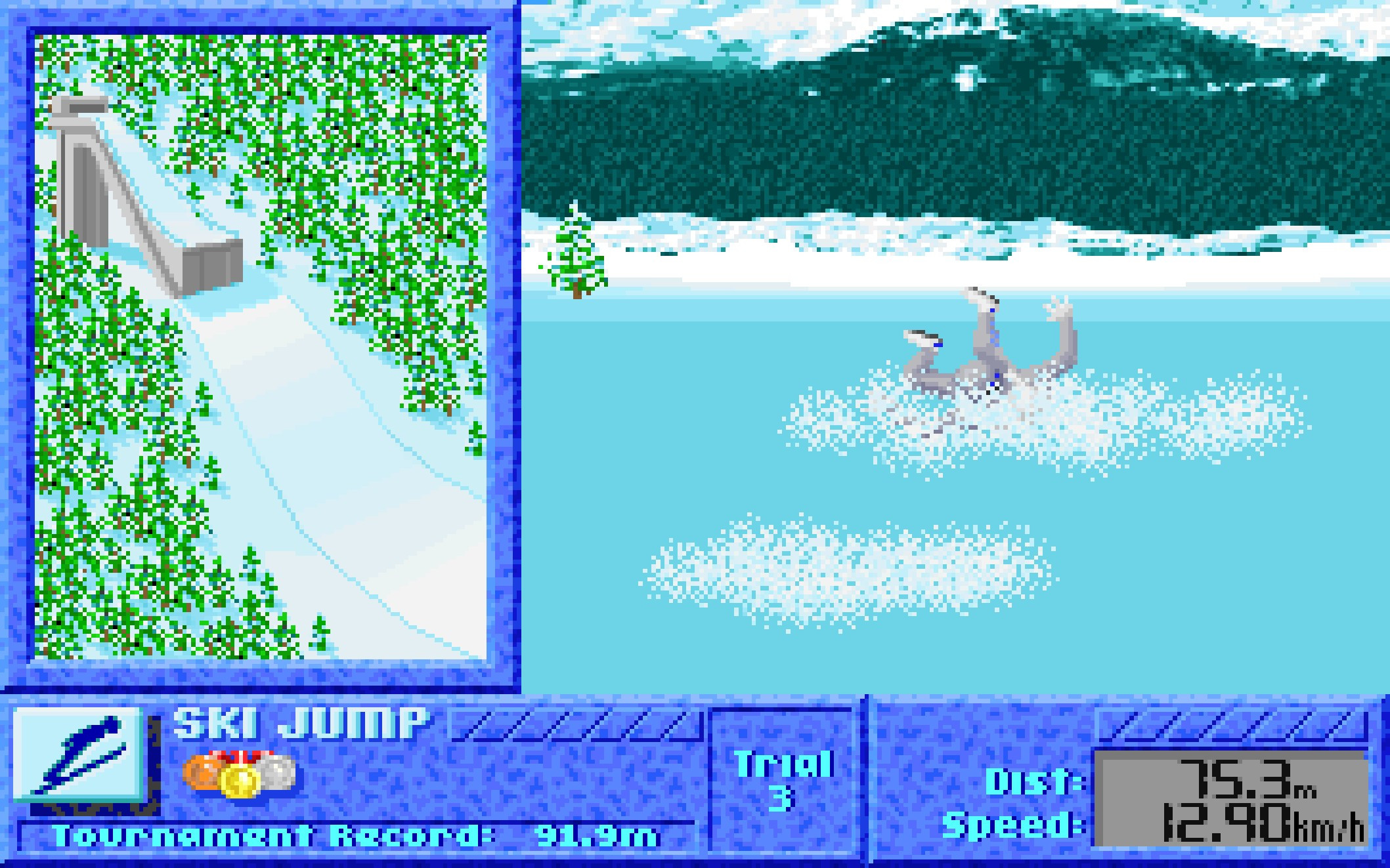 Okej šele zdele sm opazil da sem pavzo dal 10 minut pred koncem in začel besno iskat kako je ime Ski Racingu in kera leta so bila dobra, ter ste potem vse omenili. Supreme Snowboarding je bil primarno hitrostno, dirkalno, tekmovalna igra, afaik so bile figure v skokih čisto odvisni od igralca in niso doprinesli med tekmo nič.