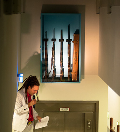 After I bought these guns, I put them into a vitrine in the foyer of the Forum Stadtpark where they still are as an sort of permanent virulent inventory that questions how we can get out of this paradoxical situation.