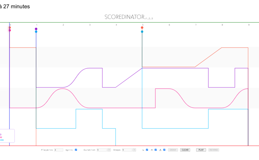 This piece has been composed with the help of the scordinator, a computer program devised by martiensgohome during a residency in the Q-O2 workspace in 2023. The program generates a graphic score for multiple musicians to follow, suggesting dynamics, entry points and pauses for each performer. Designed for live performance as well as for decision making in the studio, it is both a game and a tool. It reconciles conducting and improvisation insofar as it doesn’t tell the musician what to play, or how, but lets him make creative choices within a timeframe.