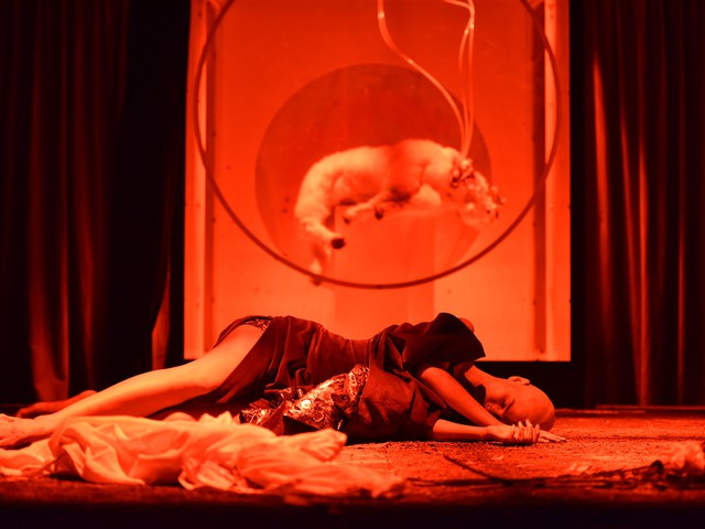 Kar je slejkoprej nujno, saj bolj ko je spremni tekst vešč in fino spisan ter bolj ko je vsa masa gradiva okoli predstave kompleksna in razkošno referenciirana, manj zna učinkovati sama na sebi, zato tu ne bom več skušal slediti njeni očitno precejšnji nanašalnosti navzven ter se osredotočil na najosnovnejše informacije in zgolj tisto, kar je bilo videti, slišati, čutiti, dojemati in misliti izključno na odru.