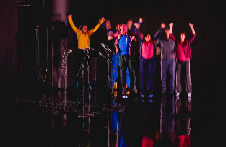 Pred slabim mesecem smo se odpravile v Slovensko mladinsko gledališče, kjer smo si ogledale premiero najnovejše predstave Slovenija šteje. To je ritmično-gibalni avtorski projekt v režiji nemškega režiserja Sebastiana Nüblinga ter Jackie Poloni, nebinarnega režiserja in didžejke, ki je prispeval tudi glasbeno podlago. Ritmična podlaga je narekovala gibalni ritem igralske zasedbe, ki so jo sestavljale članice ansambla Slovenskega mladinskega gledališča z gostjo Léo Aymard.