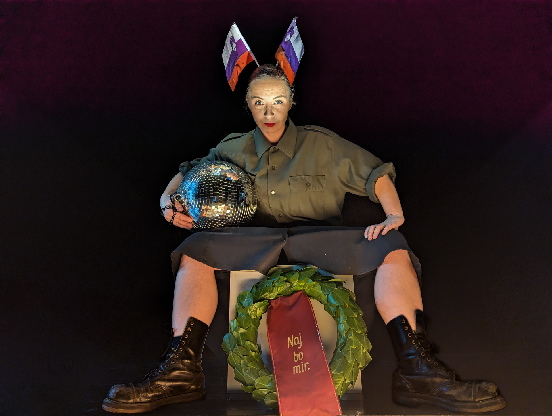 Uprizoritvena instrumentalizacija elementov državnih proslav tako kot preostanek kabareta tudi tokrat nosi jasno pacifistično sporočilo. Proti koncu predstave oder zavzame še sama Anja Bezlova, ki je občutno manj vpadljiva od svojih likov, in občinstvo pozove: »Naj bo mir.« Prav v kontrastu med manierizmi njenih likov in njeno mirnostjo sporočilo v občinstvu pristno rezonira – veliko bolj kot formalne državne proslave. Dramaturško domiselno pa nam po pozivu za mir še ne dovoli aplavza, temveč ustvari prostor za ruminacijo pravkar videnega in slišanega.