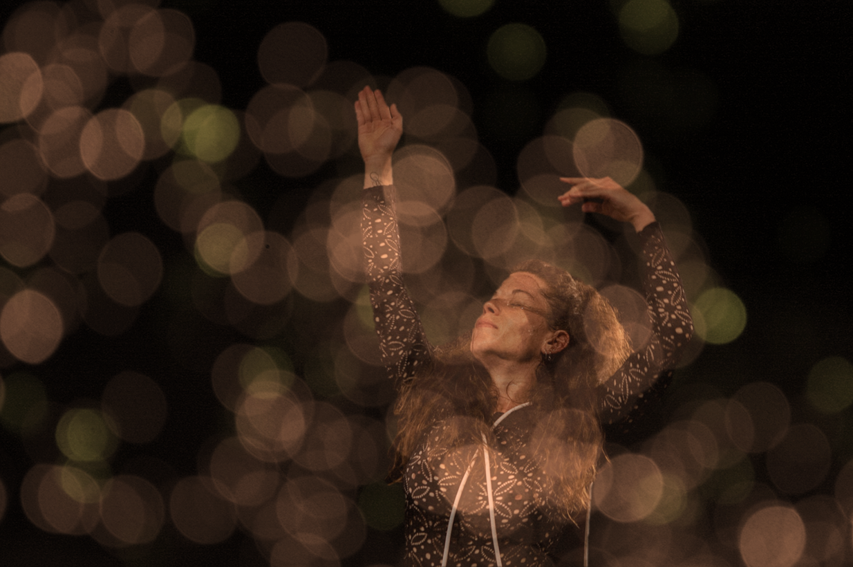 Plesalka na mračen, toplo osvetljen oder spodnje dvorane Slovenskega mladinskega gledališča privleče kabel. Občinstvu, ki je posedeno ob obod dvorane, se približa, kar bi bilo še nedavno tega vzrok za naše nelagodje, kar avtomatično aktivira našo pozornost. Na enem koncu kabla je mešalna mizica, na drugem mikrofon, a ta objekta postaneta aktualna šele v zadnjem delu predstave. Kompozicijo ležečega kabla Romih dopolni z raznobarvnimi svetlečimi kroglami, ki jih razpostavi po površini celotne dvorane. Vizualno spomni na fotogenične instalacije umetnic, kakršna je Yayoi Kusama. Prinašanje mizanscenskih rekvizitov se v naslednjem delu, ko rekvizitov zmanjka, organsko razvije v ples. Romih pleše z dvignjenimi rokami in odprtimi dlanmi, kot da bi s prsti tipala zrak v prostoru. Nadzorovano dihanje jo upočasni in usidra v trenutek, ki ga išče.