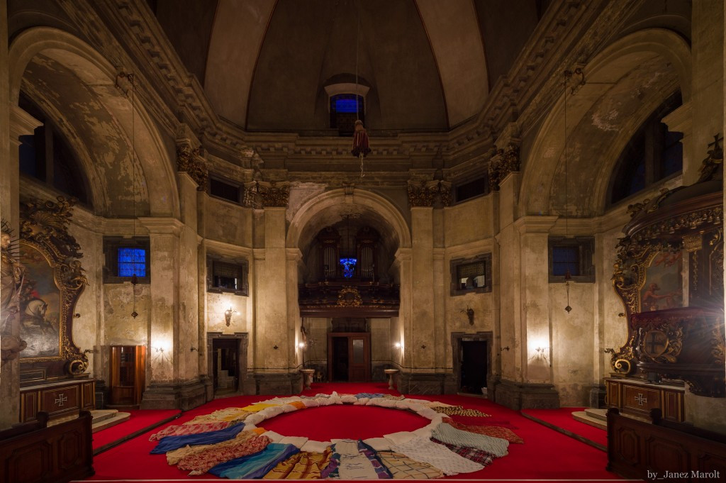 Prav zato je dogodek umeščen v tako avtentičen prostor, kot je Križevniška cerkev, ki sicer velja za eno izmed redkih slovenskih cerkva, ki so odprte za nereligiozne vsebine. Ne-tradicionalna polnočnica torej je alternativa originalni, a ta upor ni radikalen, še manj svetoskrunski ali, bognedaj, sovražen. Prisostvujemo situaciji, ki se še vedno večinsko napaja z vsebinami – četudi to pot parodiranimi – še bolj pa z bogato atmosfero, ki jo cerkveni ambient nudi. Ko namreč ležemo na tla in zremo v »sakralni« strop in vitraže, to ni le gola funkcija znotraj danega koncepta, je tudi neki kolektivni obrat v počenjanju nečesa prepovedanega, uporniškega, nečesa, kar religiozni infrastrukturi ne pritiče. Sproži se nespodobni obrat perspektive pogleda in doživljanja. Od tod tudi specifika lokacije izvedbe, ki individualni izkušnji naloži dodano vrednost, saj, kakorkoli, v prvi vrsti še vedno pripada cerkvi in njeni izvorni, »ready made« kontekstualizaciji.