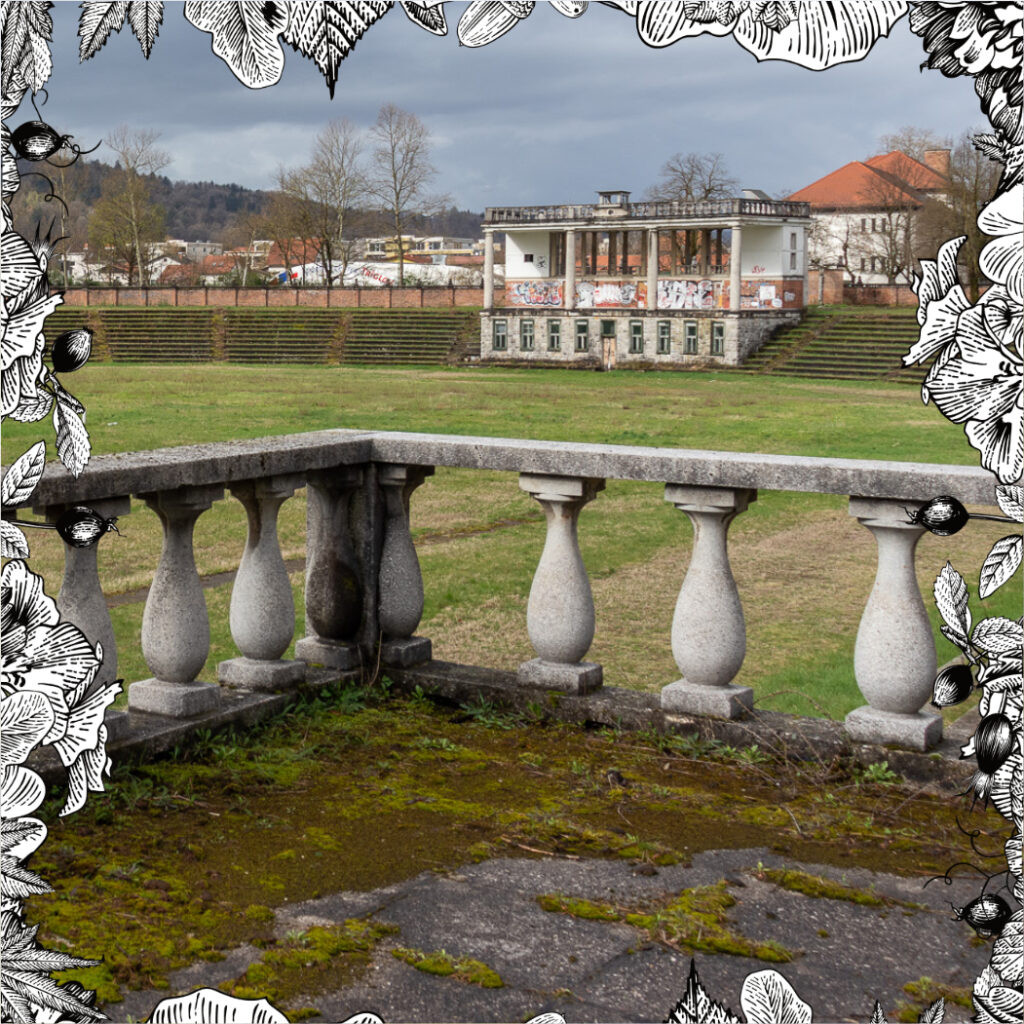Avtorici sta kljub temu našli še en način vzpostavitve izkušnje možnega, še bolj neinvaziven kot vstop v stadion. Takoj za stadionom namreč stoji Trg 9. maja, na njem pa park in otroško igrišče, po dimenzijah nekoliko manjše od stadiona, a po izkušnji zadostno, da si zbrane lahko zamislimo, kako bi po propadu zaživel stadion. Park je namreč ideja, ki spremlja novo namembnost stadiona že vsaj od leta 2015. Takrat je Nika van Berkel – soavtorica danes obravnavanega zvočnega sprehoda – magistrirala z idejno zasnovo spremembe stadiona v park, posejan z drevesi, ki bi v stadion vrnila življenje. Ob slehernem dogodku, ki je organiziran na stadionu, od shodov do sprehodov, od predavanj do kukanja čez ograjo, se radovedna javnost vselej odzove v velikem številu. Tudi danes obravnavani zvočni sprehod je poleg dveh ponovitev dobil še eno izredno zaradi velikega interesa. Življenje se hoče vrniti vanj, in to ne zgolj vegetativno.