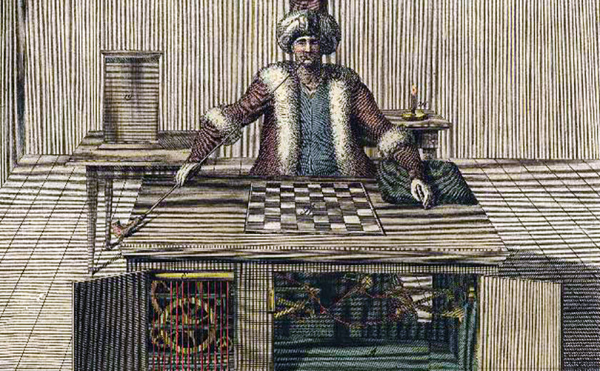 Leta 1769 je francoski iluzionist François Pelletier gostoval na habsburškem dvoru, v dunajski palači Schönbrunn. Med njegovo publiko je bil tudi avstroogrski dvorni uradnik in mehanik Wolfgang von Kempelen, ki si je po nastopu prisegel, da izumi nekaj, kar bo Marijo Terezijo očaralo še bolj od iluzionistovih magnetov. Približno pol leta pozneje je v isti palači predstavil svoj znameniti izum – šahovskega Turka. Turek je bil robotski igralec šaha, oblečen v otomansko haljo in turban. V eni roki je držal tradicionalno otomansko pipo, druga pa je počivala na omarici, ki je bila glavno čudo tega stroja. Kakorkoli so gledalci odpirali njena vratca in preverjali zapletena kolesja v notranjosti ali jo poskušali prelisičiti z magneti in nepravilnimi potezami figur, se čudežne robotske omarice ni dalo niti pretentati niti razvozlati, še najtežje pa je bilo sprejeti njeno premoč v partiji šaha.