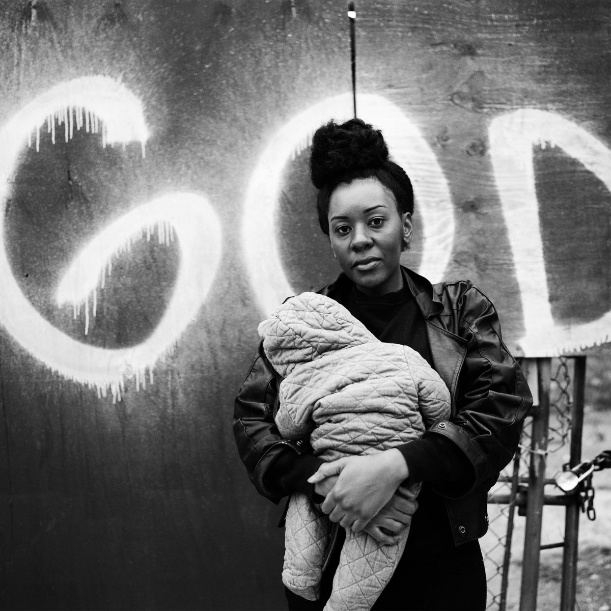 Za konec: asociacija ... Nekakšen vizualni povzetek Mlakarjevega »napora pojma« in nadaljne kreacije, ki sem jo na podlagi tega skušal iztisnit iz sebe, bi lahko bila naslovnica in vse njeno ozadje letos izdane plate Paraffin rap dua Armand Hammer, roke in kladiva skritih v imenu in priimku. Črno bela fotka Alexandra Richterja iz New Yorka. Črnka z otrokom v naročju in z belo barvo nasprejanim grafitom »GOD«, se pravi »BOG« za njenim hrbtom. In god we trust, zapisano na dol$u, beli bog, beli ič, belič. Vidimo le še žičnato ograjo s ključavnico. Nobenega moškega; nič mož; mož nič; mošnjiček-it-out: nadajati otroka, narečno za dojiti ... BOG IN JA ... BOGINJA!